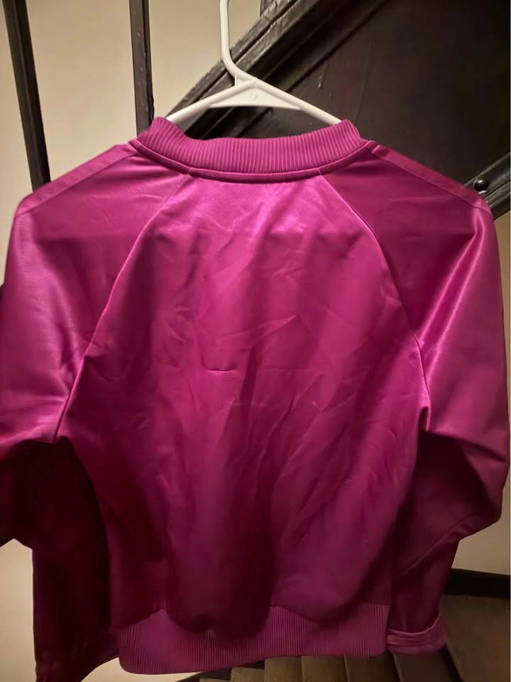 Beautiful jacket 100% polyester lightweight brand Adidas Originals limited edition of Missy Elliot - line "Respect Me" Satin purple jacket. Super original! Press buttons, crown application. Sleeves with brand straps and wrists can be adjusted with the drawstring that comes with it. V-neck and elastic waist.
