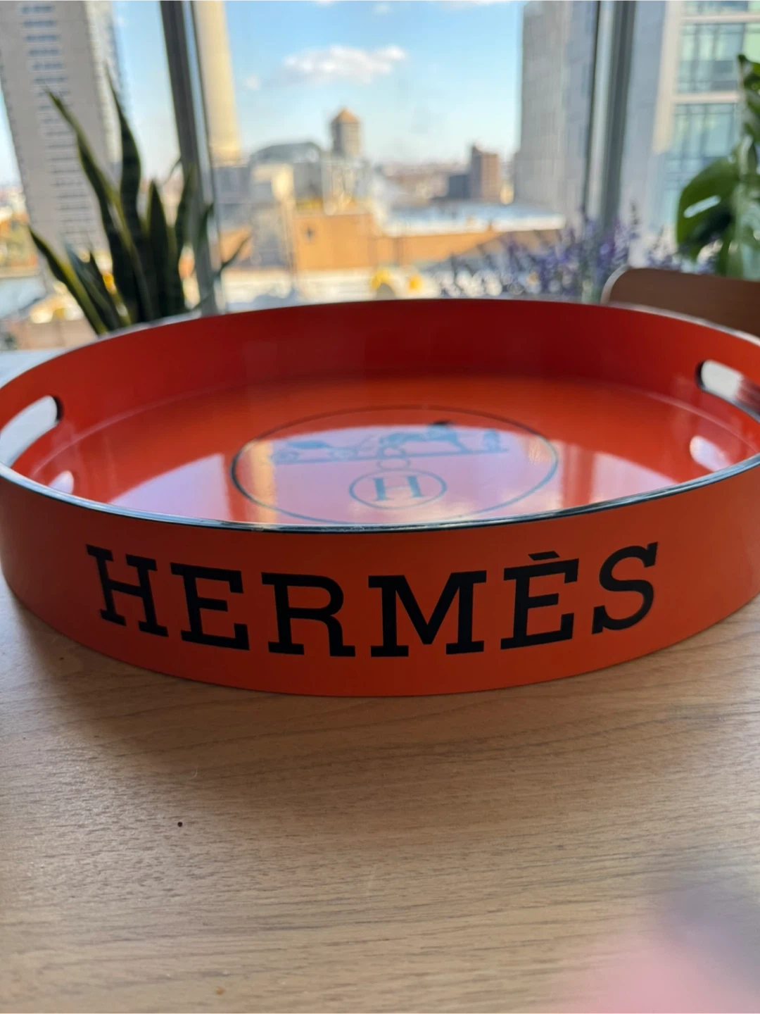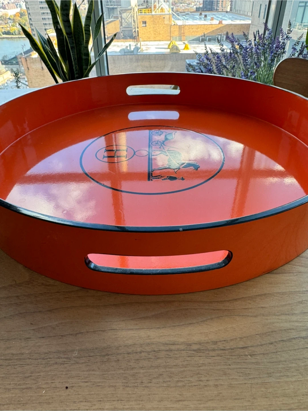 Selling a vibrant Hermès round tray with matching coasters! The iconic design adds a touch of luxury to any space. Perfect for serving or displaying your favorite items. This is an imitation piece but in excellent condition.