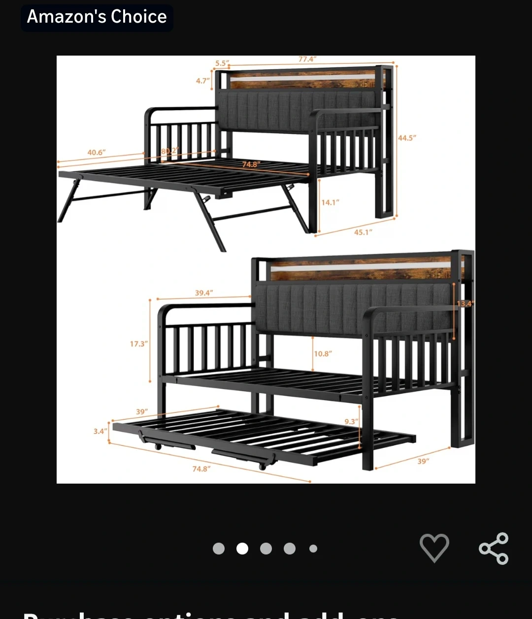 Not Negotiable a Jocoeval daybed with a trundle and LED light. It features a heavy-duty metal twin bed frame with an upholstered storage headboard and charging station. This daybed also includes a pop-up trundle bed, perfect for a living room, bedroom, or guest room. Originally bought for $229.80