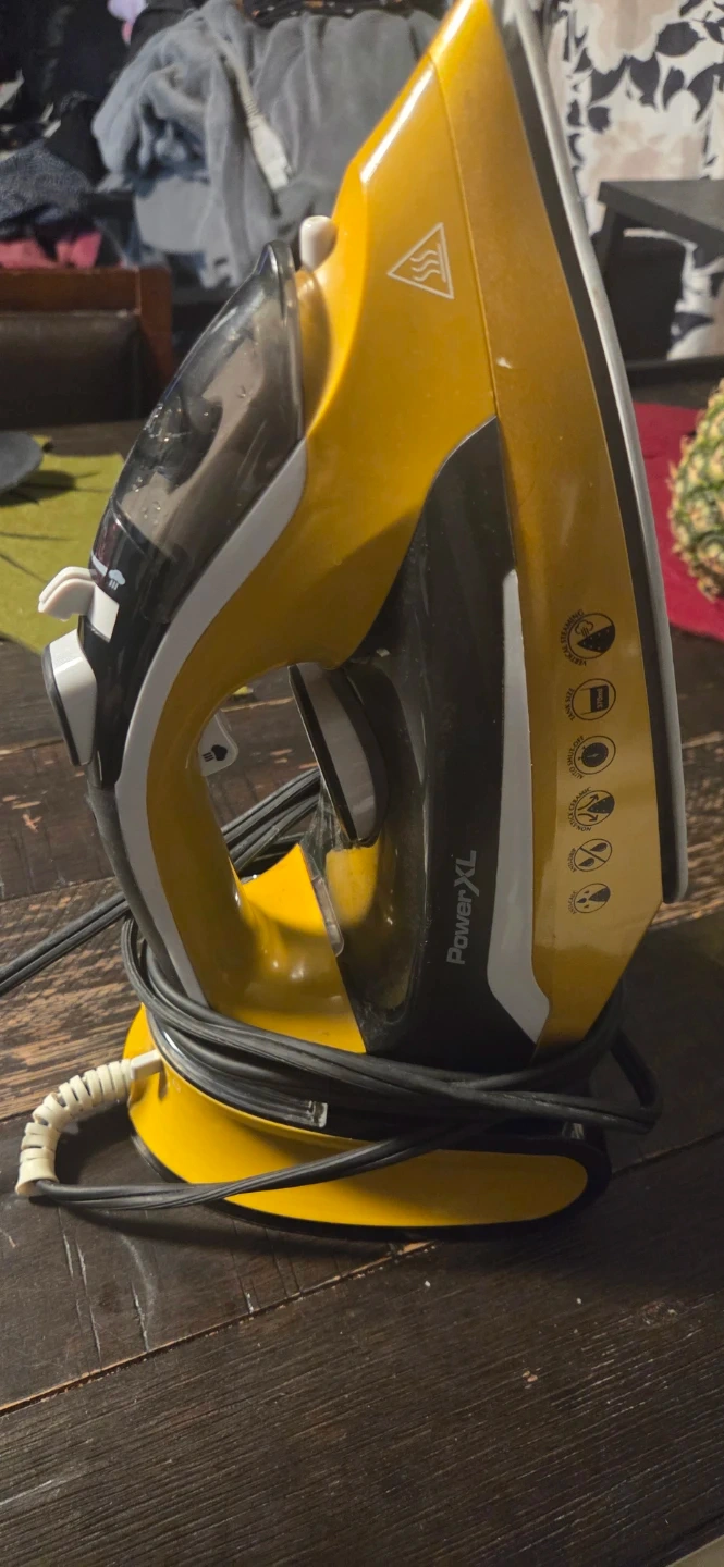 18Selling a yellow PowerXL steam iron. It's in great condition and ready to help you get those wrinkles out! It comes with its base and cord.