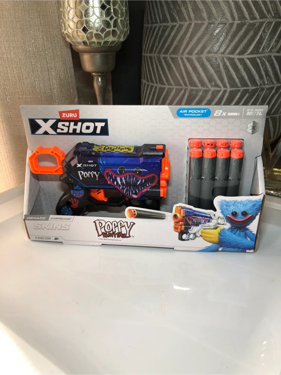 Selling a Zuru X-Shot Skins Menace Jumpcare blaster featuring Poppy Playtime theming! It comes with Air Pocket Technology and 8 darts. Recommended for ages 8+