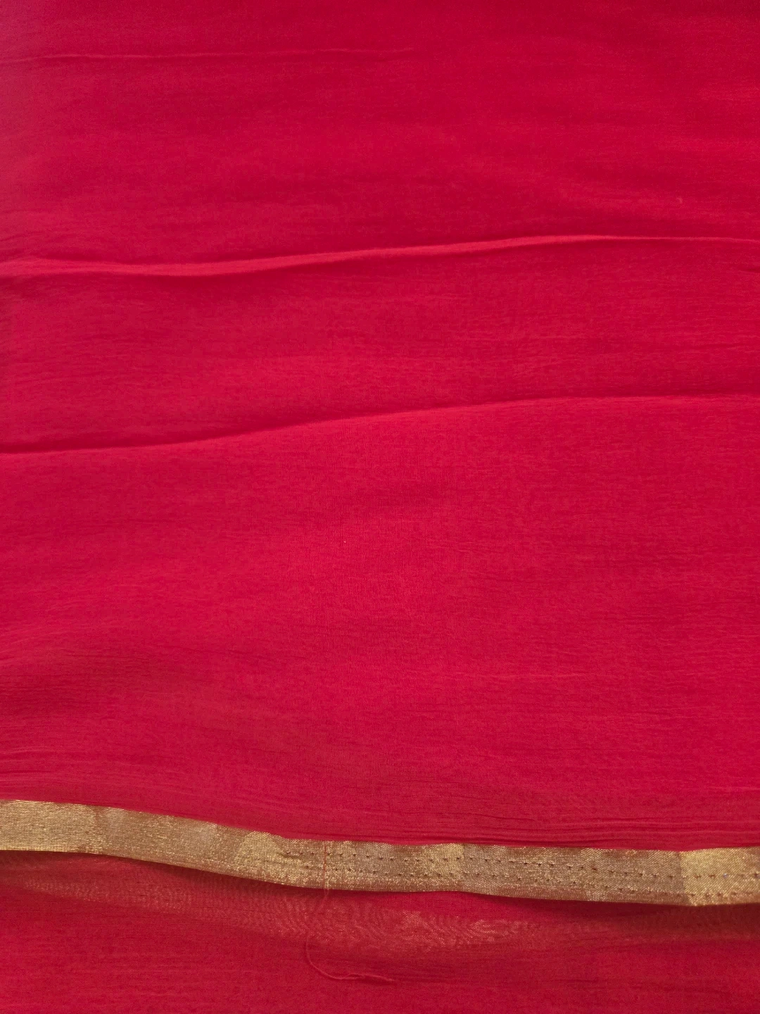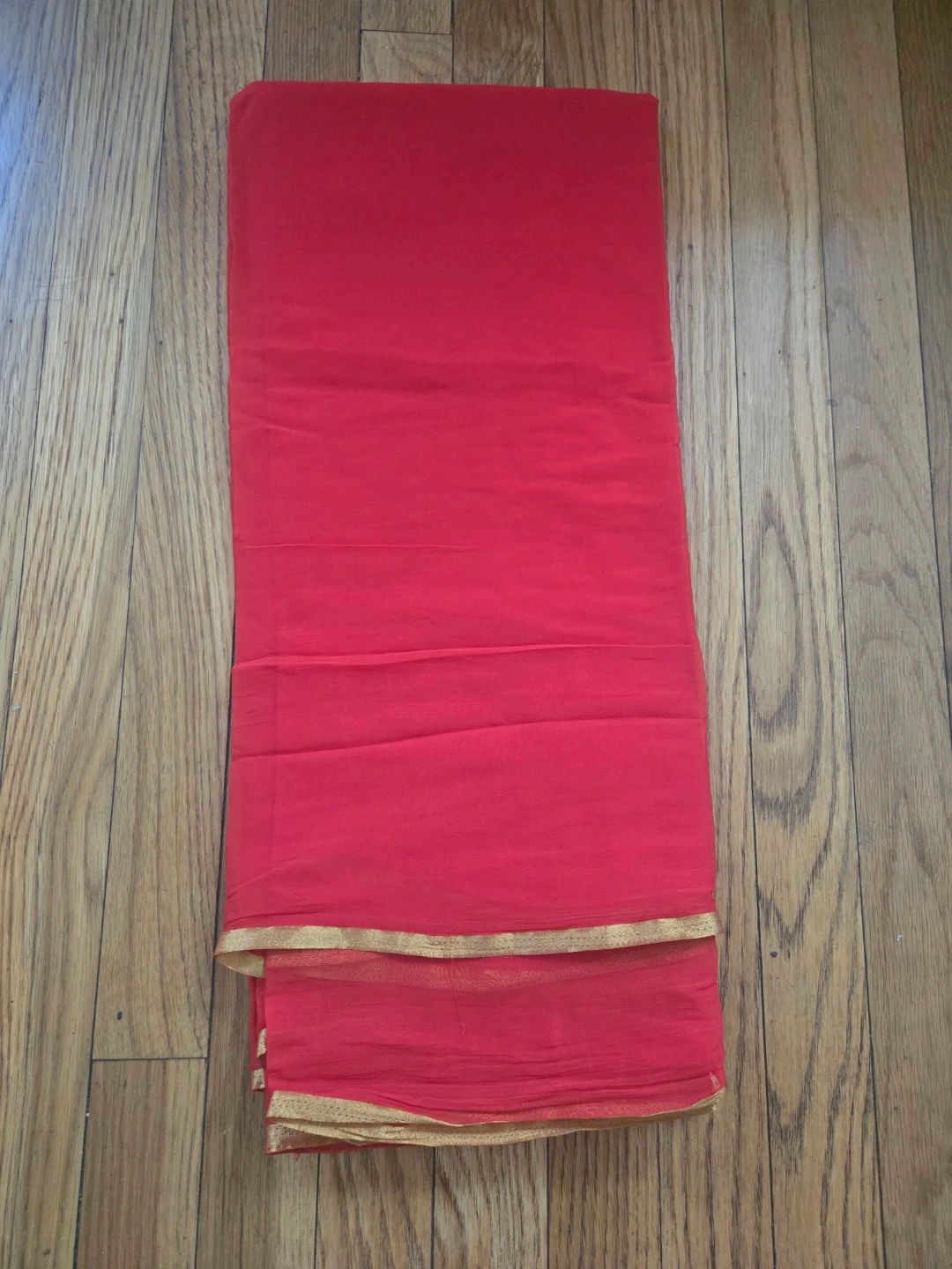 Selling a beautiful red sari blouse with gold flower accents! The material is lightweight and perfect for warmer weather. It comes with a matching red sari with a gold border. This set is in great condition and ready for a new home!