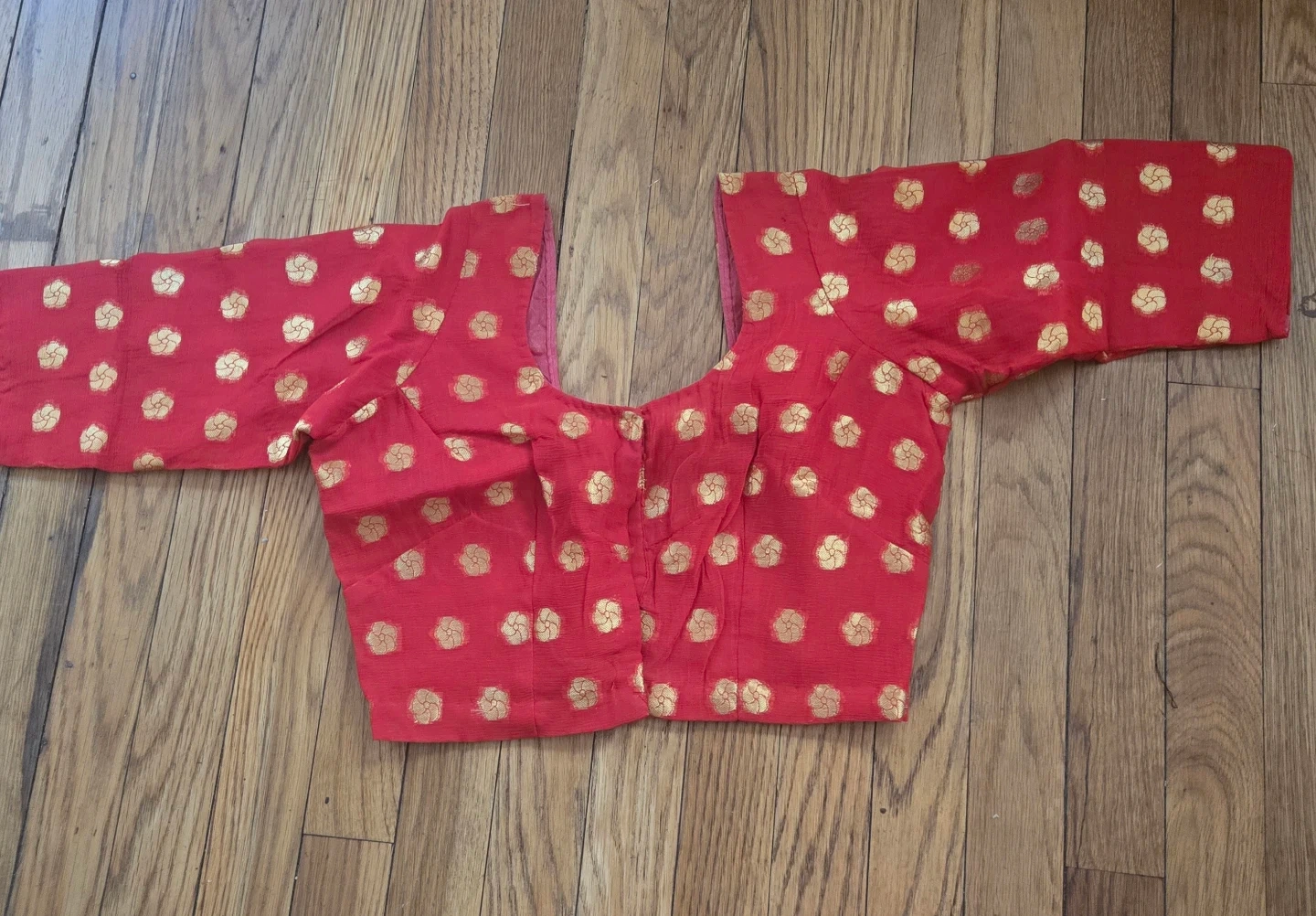 Red Sari Blouse with Gold Accents