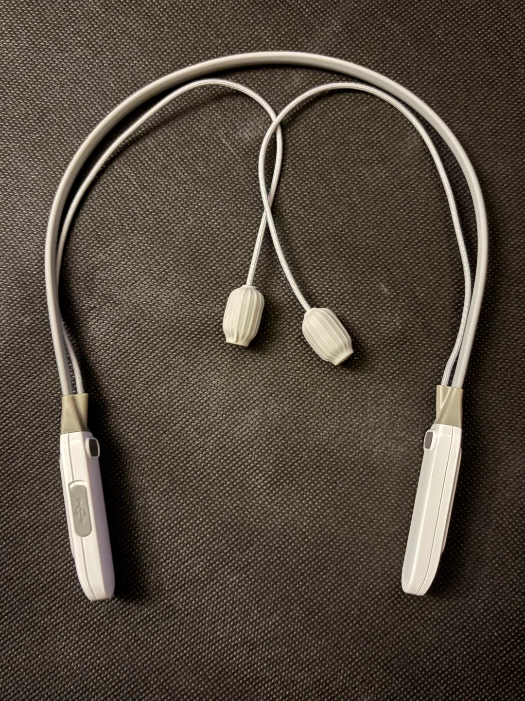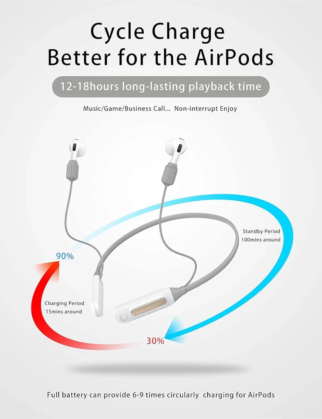 132This is a wearable power supply for Airpods that goes around your neck. It greatly extends the battery life of your AirPods. Requires USB C cable to charge. Used only once.