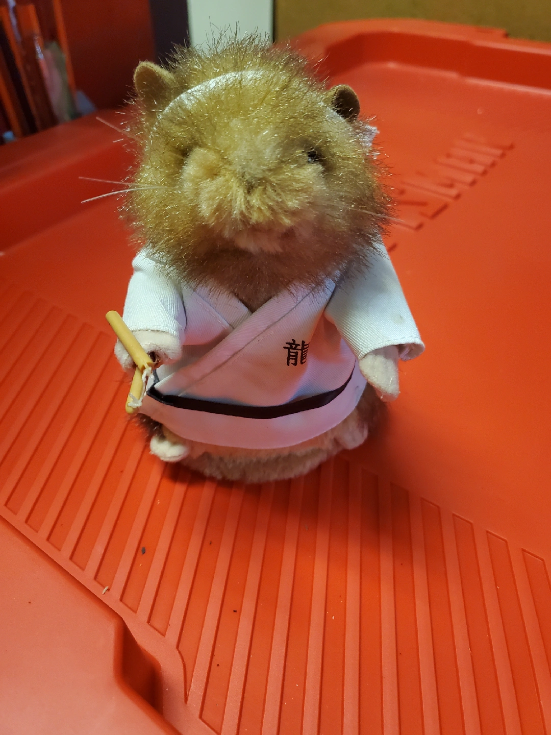 60This adorable hamster plush is ready for some karate action! plays the song kung fu fighting while dancing and spinning the nunchuck, it's sure to bring a smile to your face. The plush is in great condition and ready for a new home.