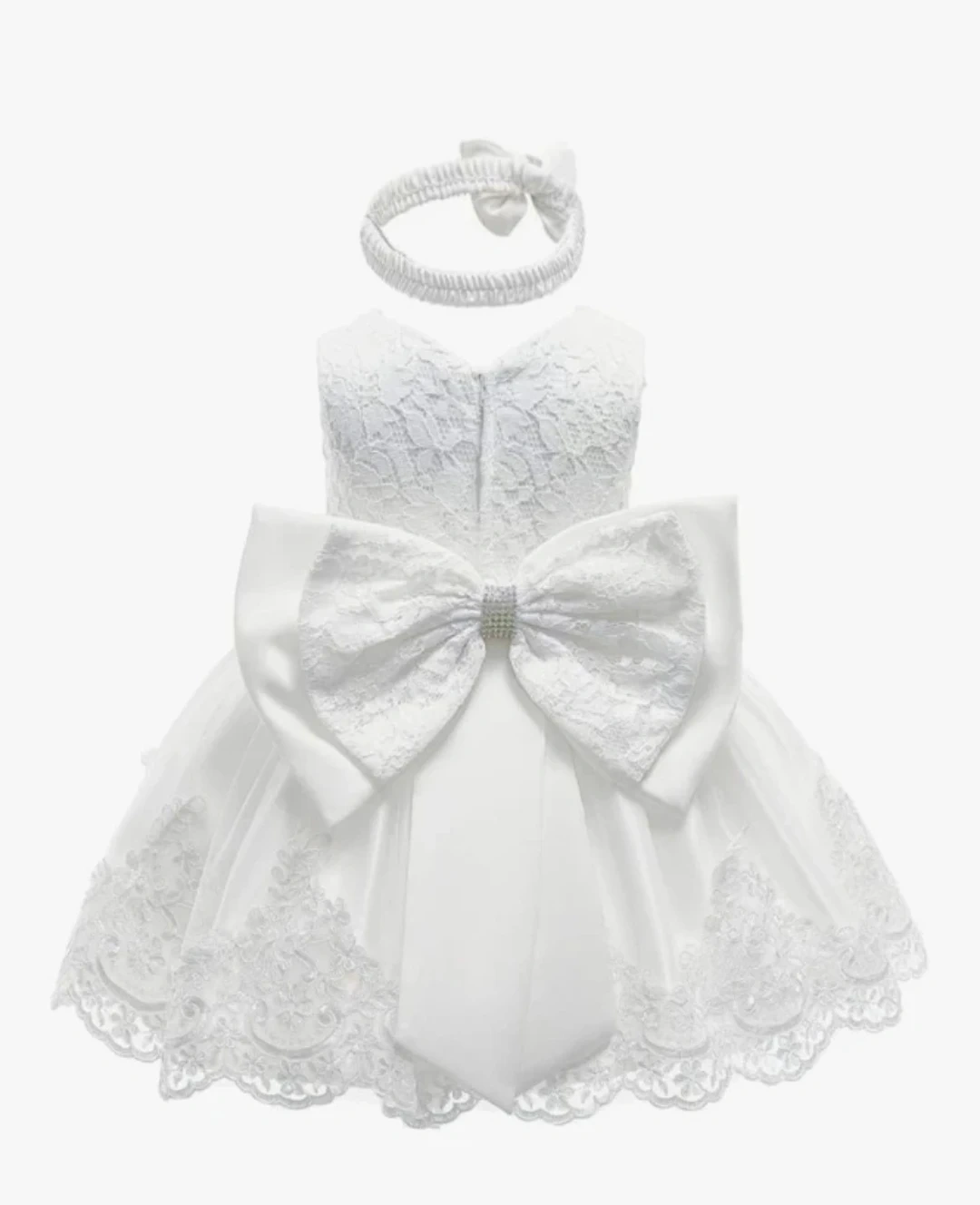 Baby White Dress with Headband. christening