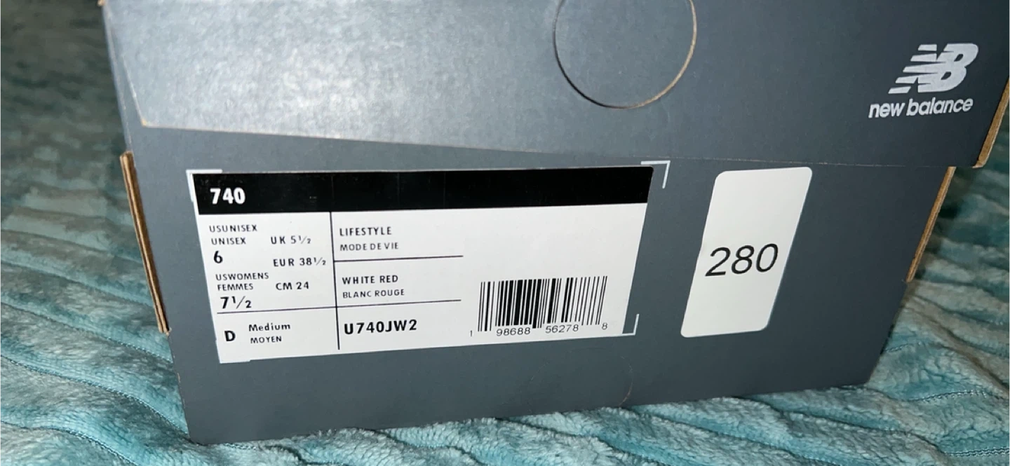 Selling a pair of New Balance 740 sneakers in white and red! They are women's size 7.5. The box is included!