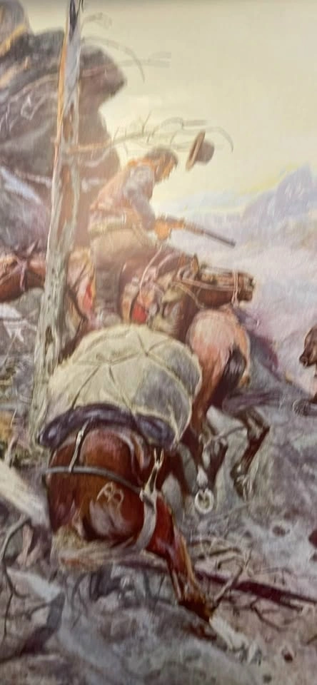 70I have a Charles Russell print titled a disputed trail, let me know if you have any other questions. It is 14x10.5. I have other Charles Russell prints listed on here as well.