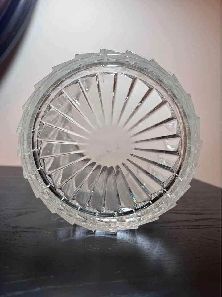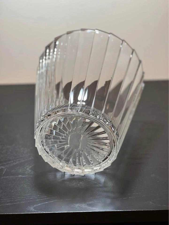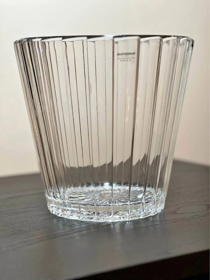 131Vintage Imperial 24% Lead Crystal Ice Bucket (or champagne cooler). Made in the USA around 1997, featuring a classic design with vertical panels. Brand: Imperial Crystal Material: 24% Lead Crystal Origin: Made in the USA Features: Heavy, clear glass with alternating vertical textured and clear ribs Dimensions: Measures 8 inches tall and 7.5 inches wide at the top Condition: Comes with original label, some imperfections as shown in the photos Sold as is