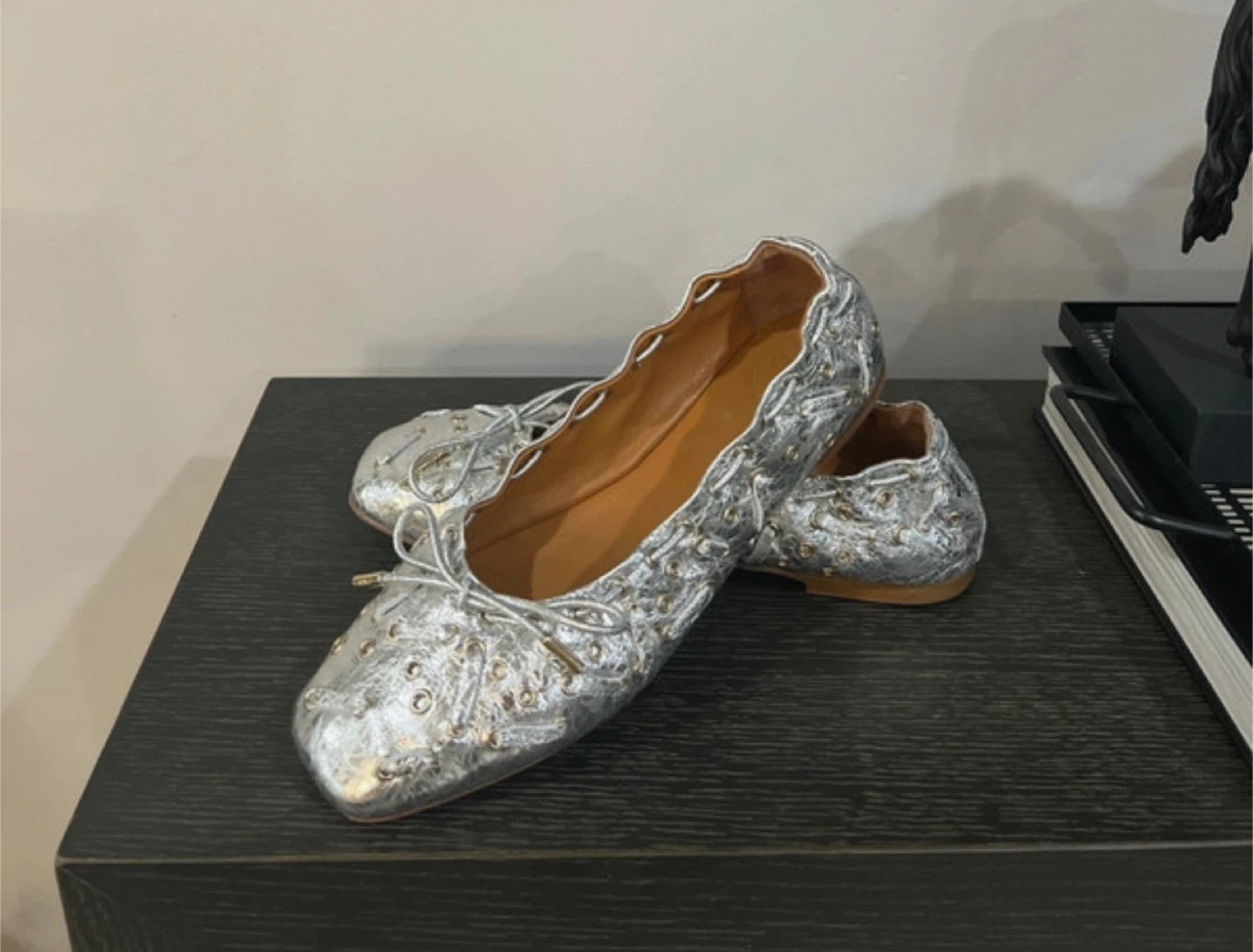 Buy & SellChloé Silver Ballerinas Size 6.5Chloé Silver Ballerinas Size 6.5$163Selling a pair of Chloé ballerinas in size 37.5. They are a beautiful silver color and come with the original box. The original price was $795ConditionGoodSize6.5BrandChloéWHERE TO MEETCheck LocationView MapSELLERverifiedSorinaSalisbury600 reviews0 chats·0 favorites·12 views