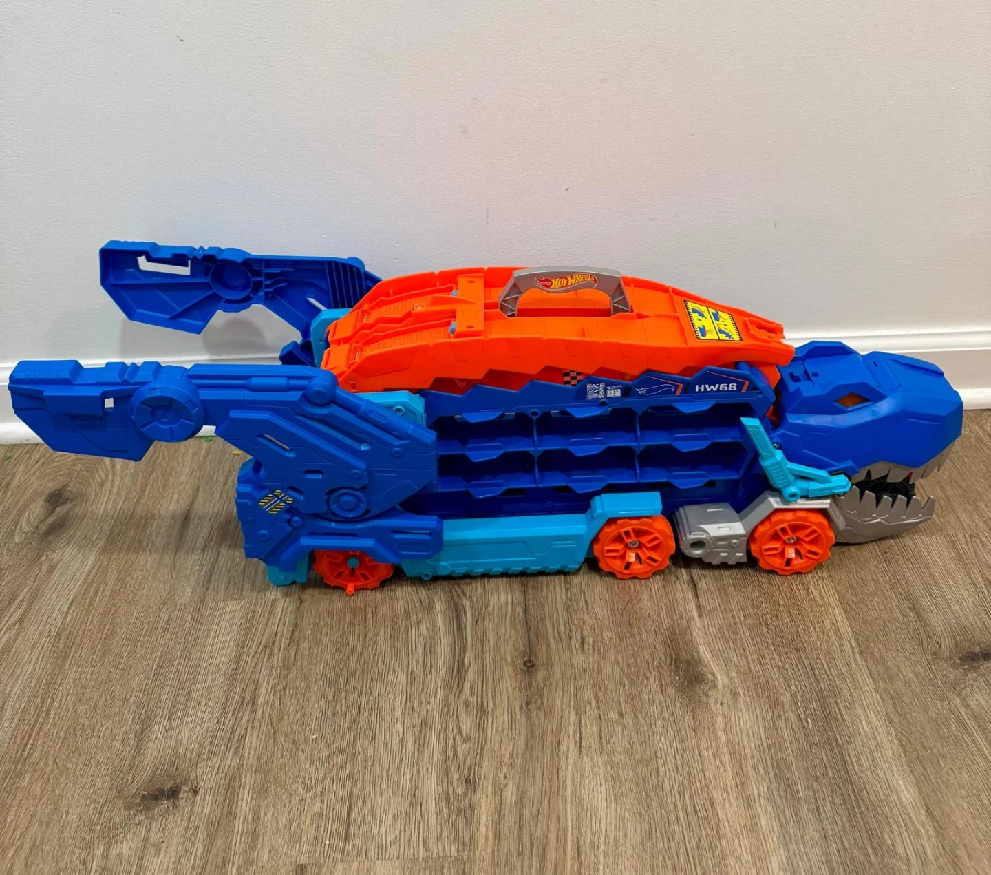 Selling a Hot Wheels Ultimate T-Rex Transporter Ramp Truck! This toy is in great condition and ready for a new home. It's a fun and exciting playset for kids who love cars and dinosaurs. The truck features a ramp that launches cars into the air, and the T-Rex design adds a thrilling element to playtime