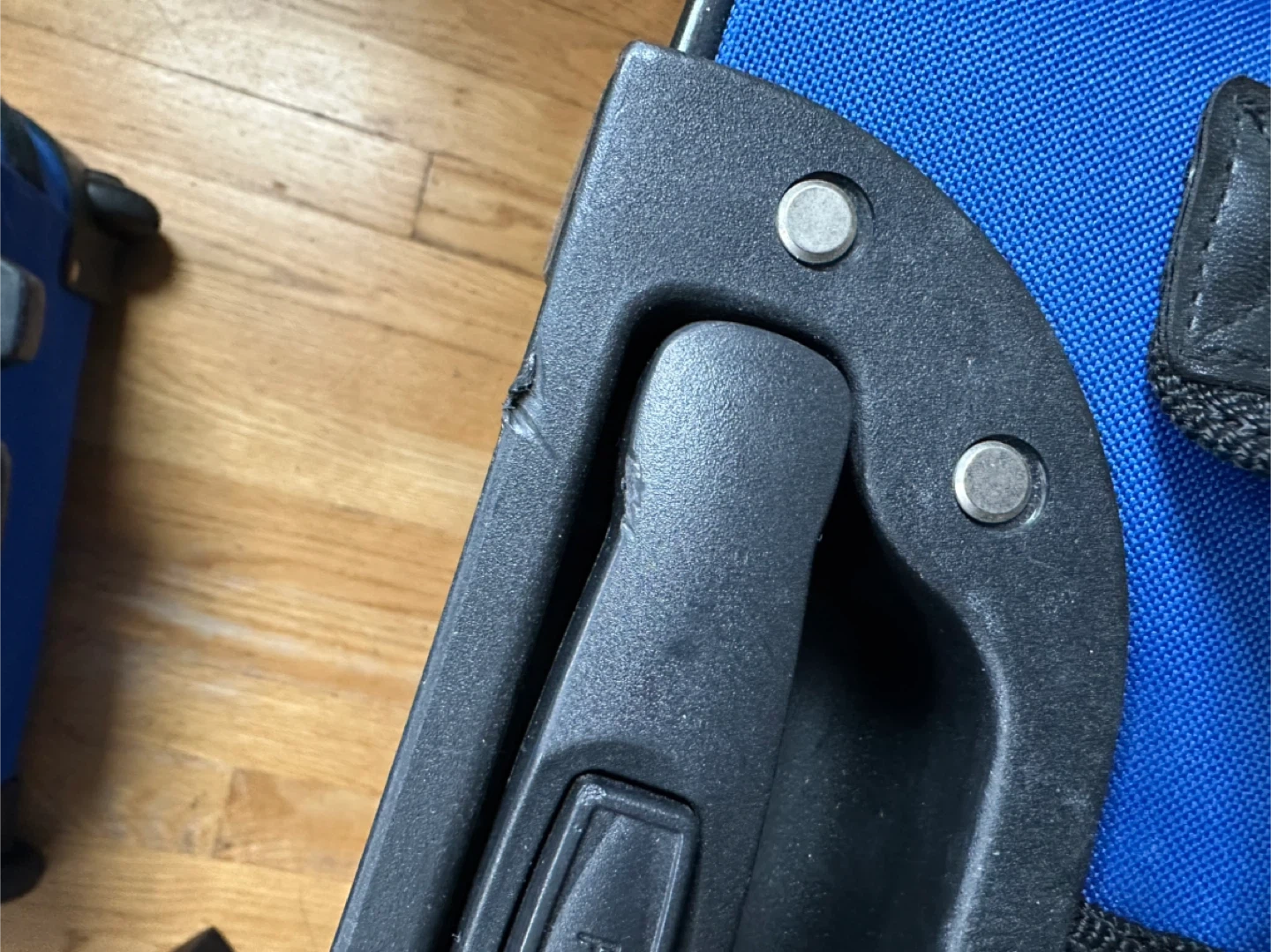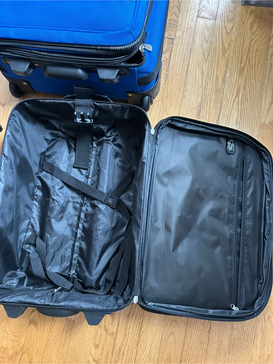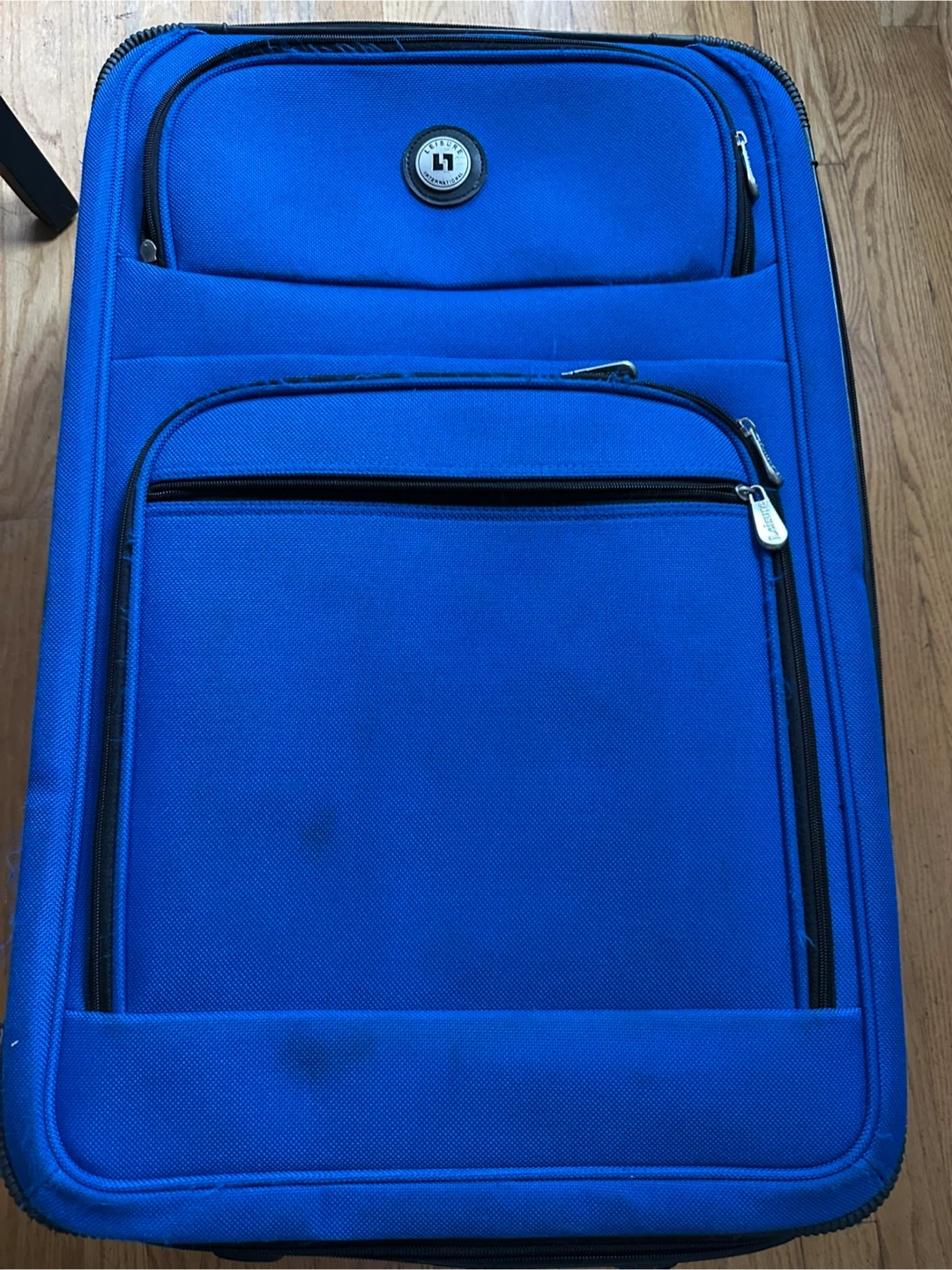 Selling a 3-piece luggage set from Leisure in a vibrant blue color! Includes a large rolling suitcase, a smaller carry-on size rolling suitcase, and a duffel bag. Perfect for all your travel needs. Two wheels . Duffel bag has never been used (has lock and key). Has some minor wear/tear