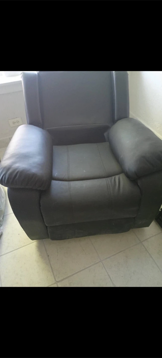 Selling a comfortable black leather recliner. It's perfect for relaxing after a long day. The recliner is in good condition and ready for a new home