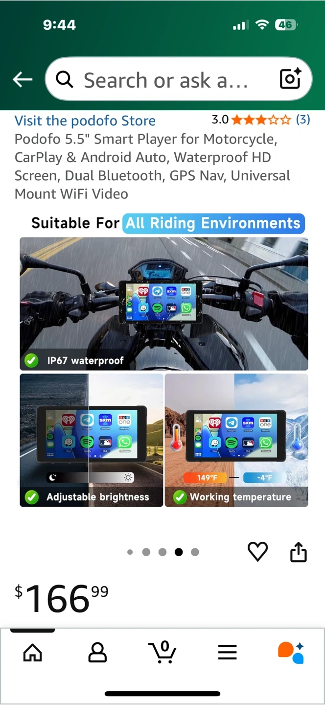 Selling a Podofo 5.5" Smart Player for Motorcycle, compatible with CarPlay & Android Auto! It features a waterproof HD screen, dual Bluetooth, GPS Navigation, and a universal mount for WiFi video. Great for staying connected and navigating on the go
