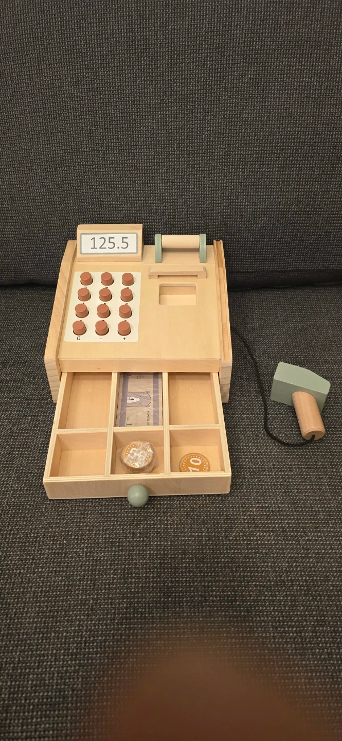 Selling a brand new Coco Village Wooden Cash Register for kids aged 3 and up! It's still in its original box and ready for a new home. This cute wooden toy is perfect for imaginative play and learning about numbers. Comes with play money and coins to make it even more fun!