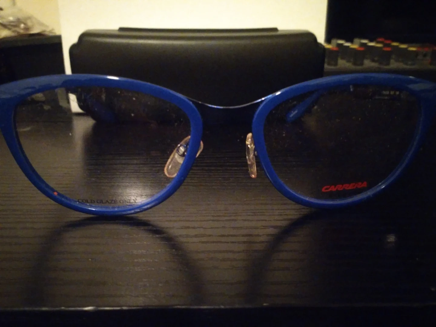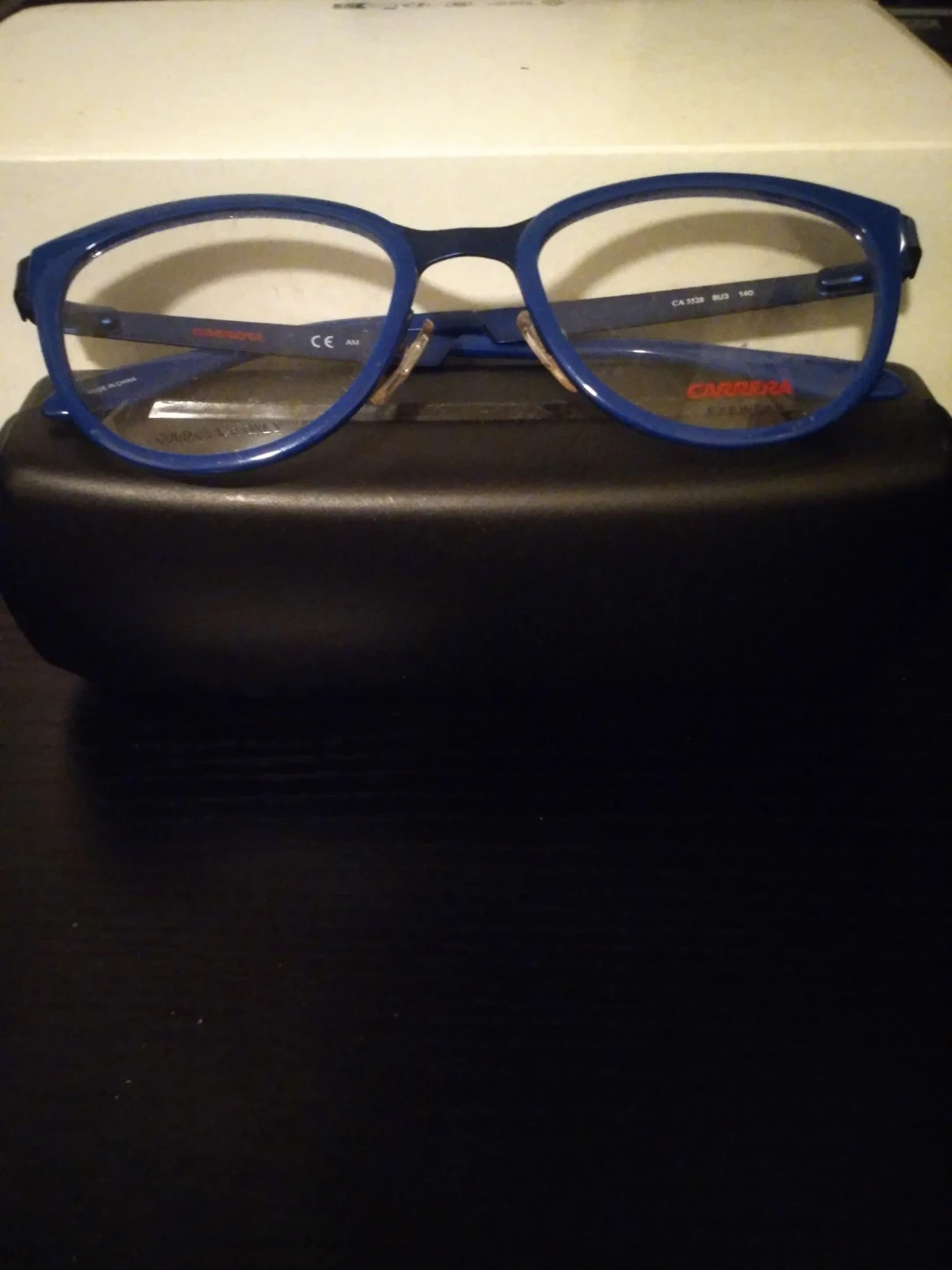 Selling a pair of Carrera eyeglasses. The model number is CA 5528 8U3 51-19-140 B-measurement 40mm. They are blue and come with the original case
