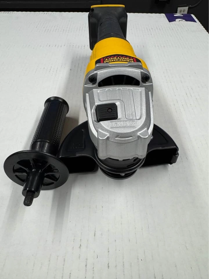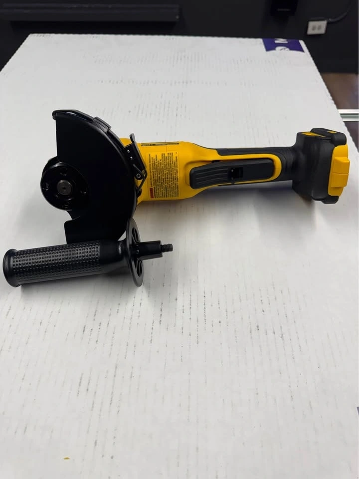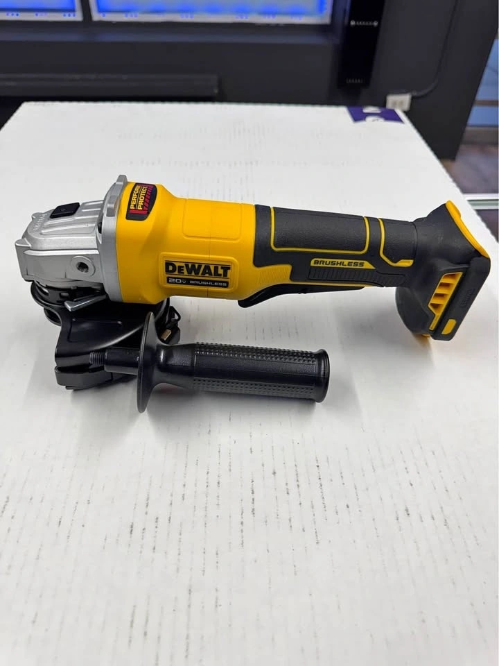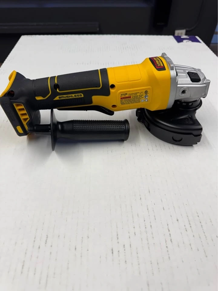 This DEWALT 20V MAX Cordless Brushless 4-1/2 in. Angle Grinder is great for grinding applications and maintains constant speed under load. It's equipped with overload protection and an efficient brushless motor. This cordless tool accommodates 4.5 in. wheels and includes a Type B guard for grinding, plus a Clip-On Guard for cutting operations. Designed for versatility and durability, it features mesh screens to help prevent debris from entering internal components. The paddle-switch operation allows for convenient starting and stopping. Ideal for tough jobs! (Battery and charger sold separately). It accepts 4 in. - 5 in. wheels. The brushless motor requires minimal maintenance. Quick-change guard removal is tool-free. Feel free to message if you have any questions!