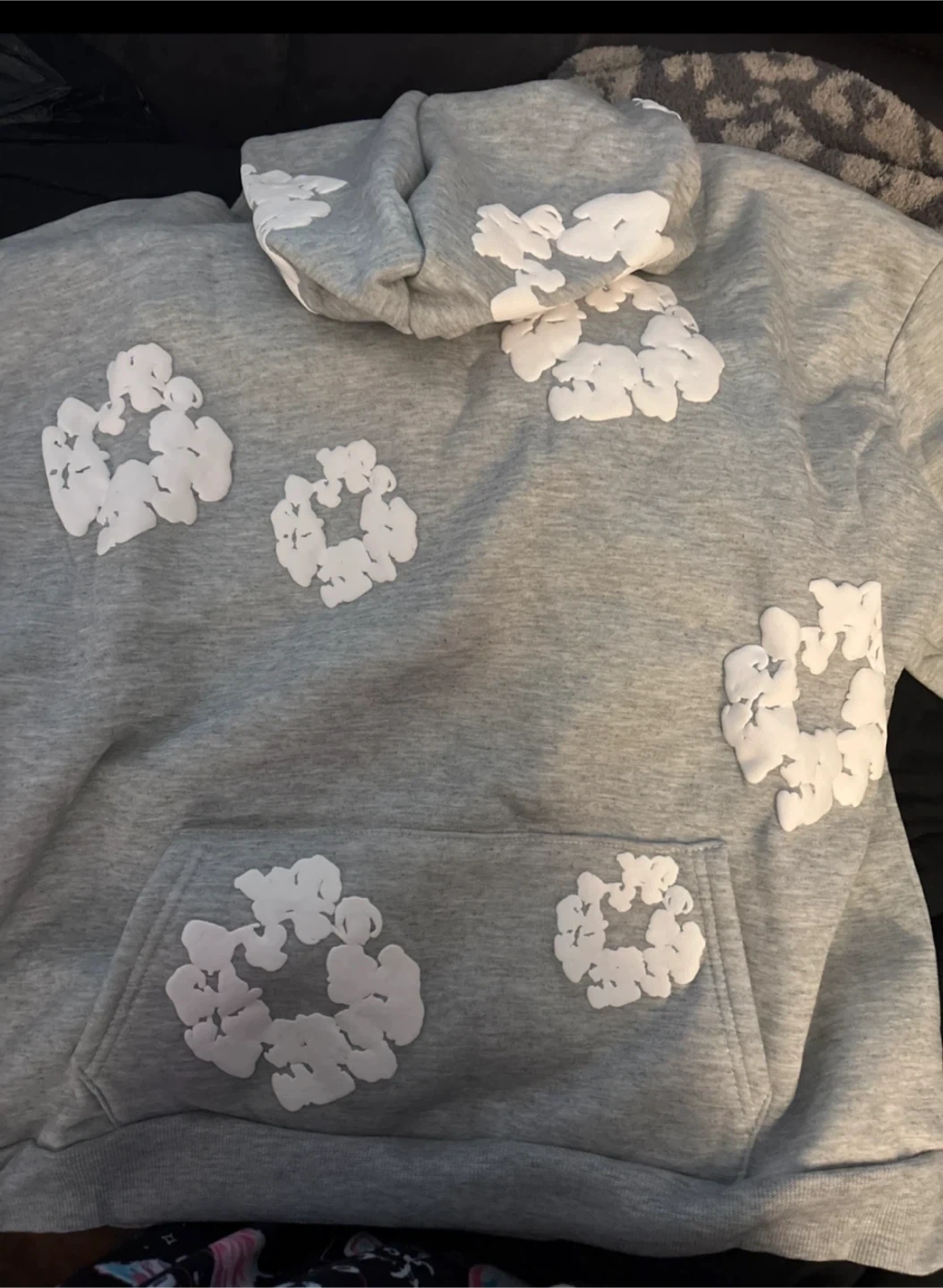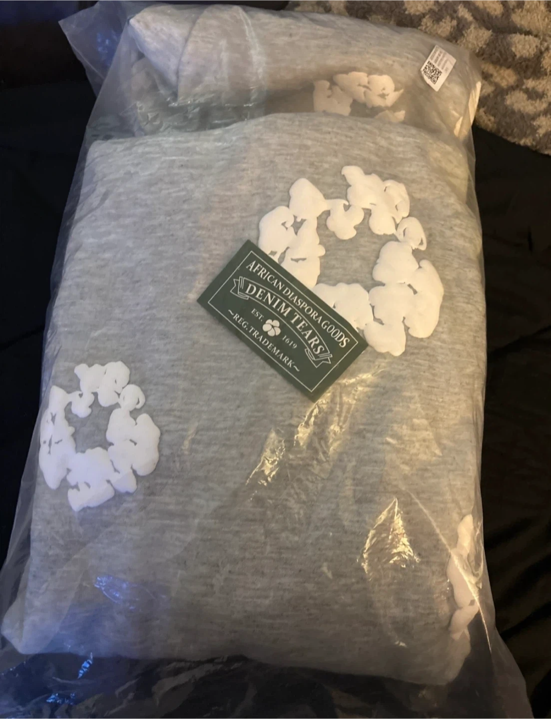 1000+Selling a gray Denim Tears hoodie with the African Diaspora Goods design. It features a unique pattern and a comfortable fit. Perfect for casual wear! New