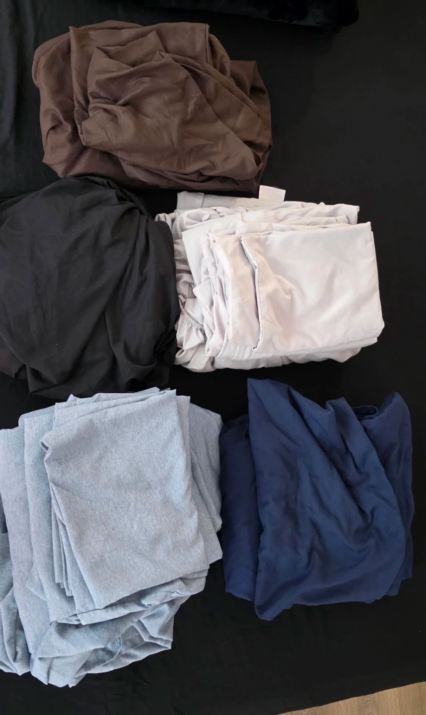 3 sets of 5 pieces Full bed Linen (Light Blue, light Gray and Black)