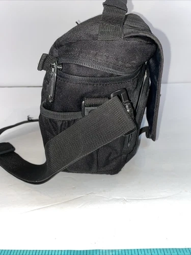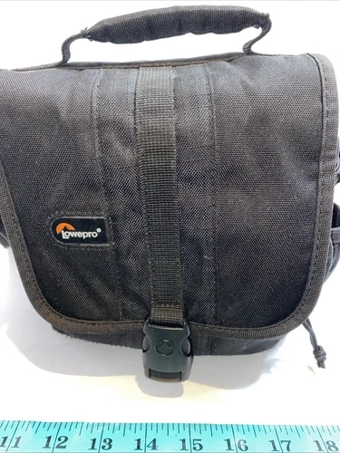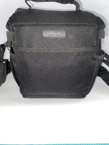 The Lowepro Camera Bag Adventura 140 is a versatile and durable nylon bag designed to fit cameras. With a sleek black exterior and orange interior, this carry/shoulder bag features padded compartments and accessory slots. It comes in a compact size of 7 1/4" x 7.5" x 5 1/2". This universal bag is lightweight at 13oz, making it convenient for on-the-go photographers to carry their equipment securely and comfortably. The Lowepro Adventura 140 is a practical and stylish choice for those looking to protect and transport their cameras with ease. No shoulder strap.