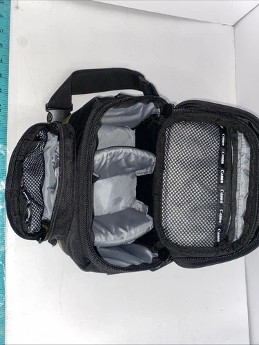 The Canon EOS 100ES Carry Shoulder Bag in black is a durable nylon bag designed specifically for Canon camera models such as the EOS 60D, 70D, and Rebel T5I. It features a padded shoulder strap for added comfort and can hold a standard camera, camcorder, flash, and lens accessories. The bag is water-resistant and includes an adjustable strap, making it a practical choice for photographers on the go. It is suitable for various Canon camera series and is a reliable option for carrying your camera equipment securely.