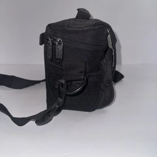 The Lowepro Ridge 10 Arctic Blue/Black Digital Camera Pouch Shoulder Bag is a compact and durable nylon bag designed to fit a compact camera. With a sleek black color and padded features, this carry/shoulder bag by Lowepro is lightweight at only 3 oz and has dimensions of 9”x5”x7”. It is compatible with universal camera brands and is specifically designed for compact camera models, making it a practical and protective accessory for photographers on the go.