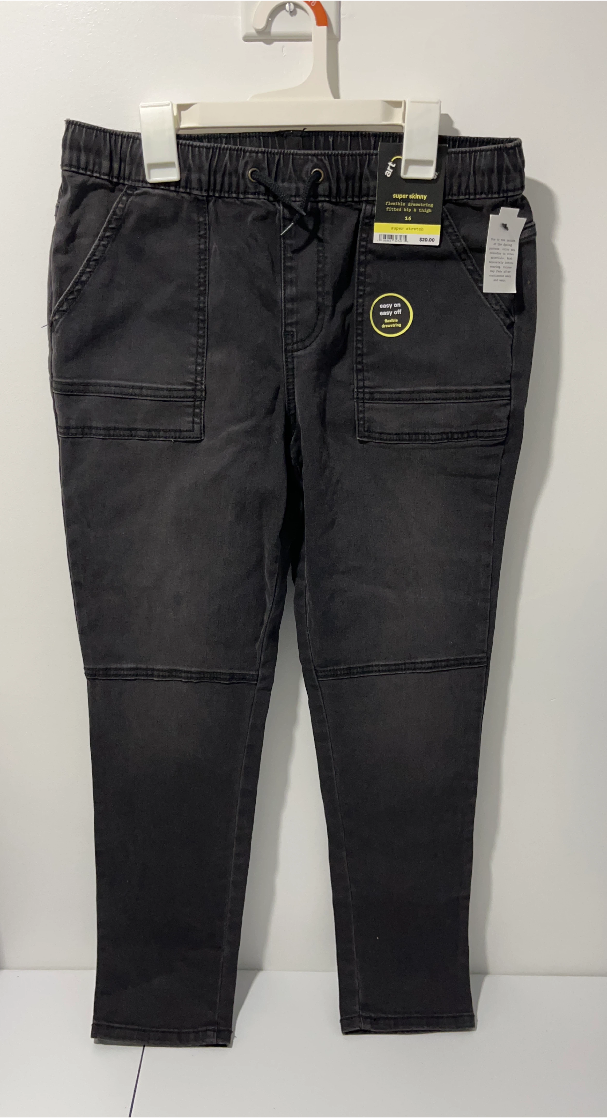 These art super skinny jeans are a flexible drawstring style with a fitted hip and thigh. They're a size 16 and have super stretch. They feature an easy on/easy off flexible drawstring. Originally bought for $20