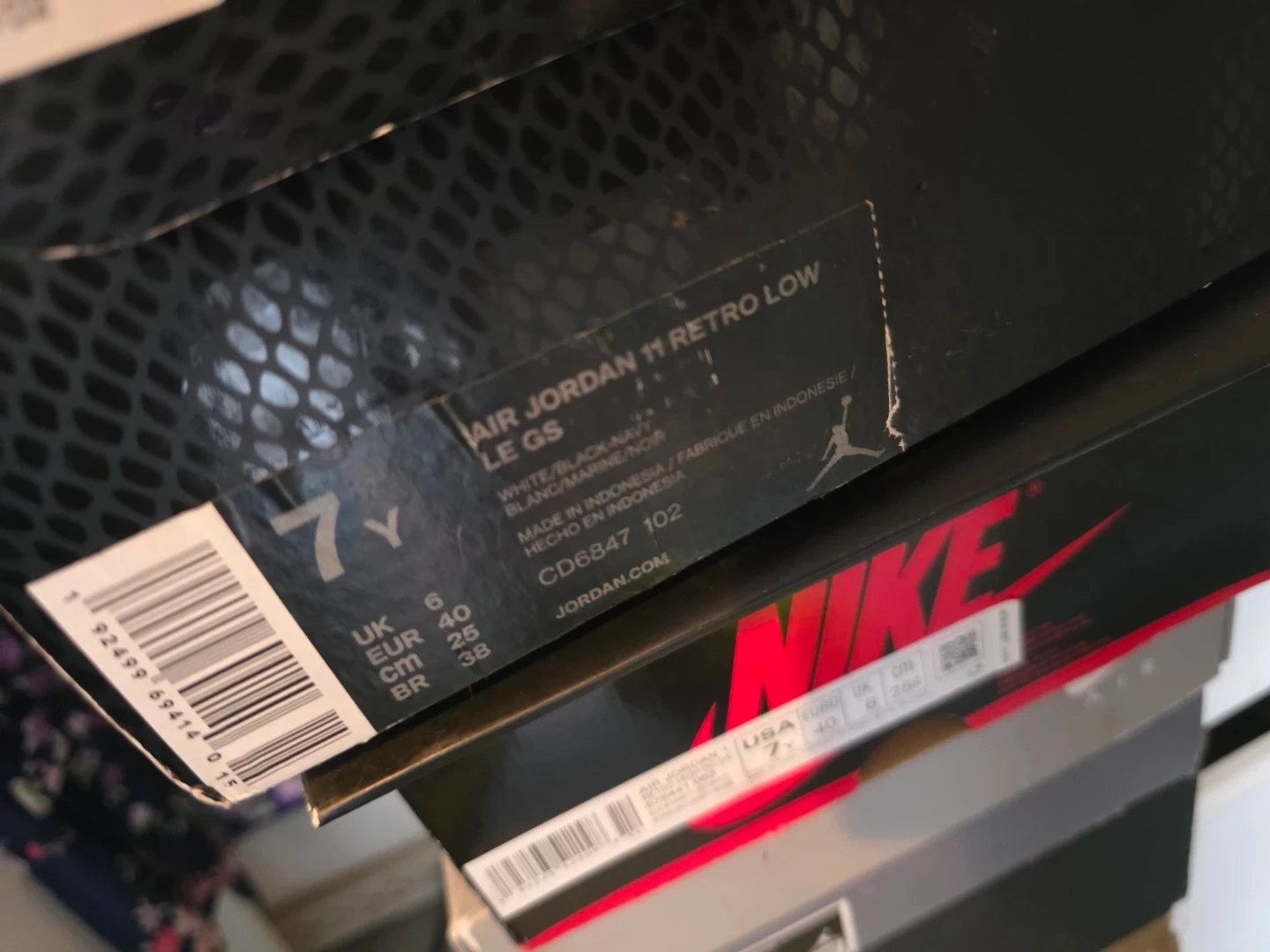 Selling a pair of Air Jordan 11 Retro Low LE GS sneakers. These are in white/black-navy color and come in size 7Y. They come with the original box.