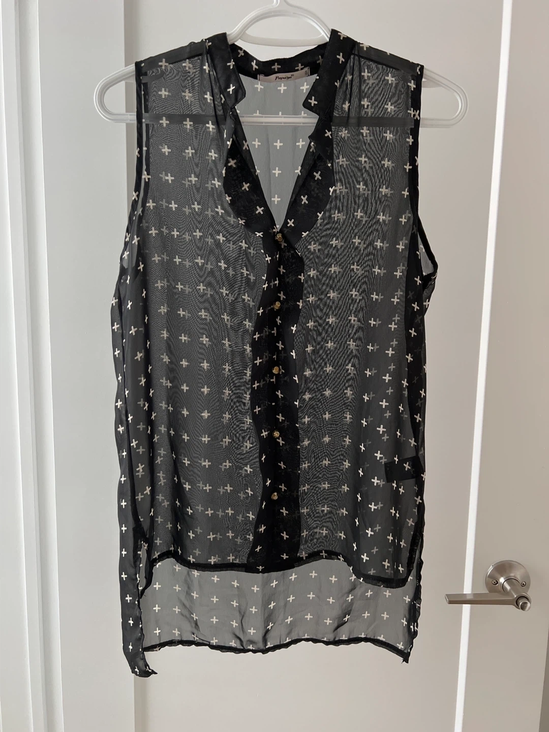 Buy & SellPapaya Black Sheer BlousePapaya Black Sheer Blouse$5This is a Papaya black sheer blouse with a button-down front. It's in good condition and perfect for layering or wearing on its own!SizeSmallBrandPapaya0 chats·0 favorites·1 viewsSELLERverifiedJustineThe Ward550 reviewsWHERE TO MEET120 Huron