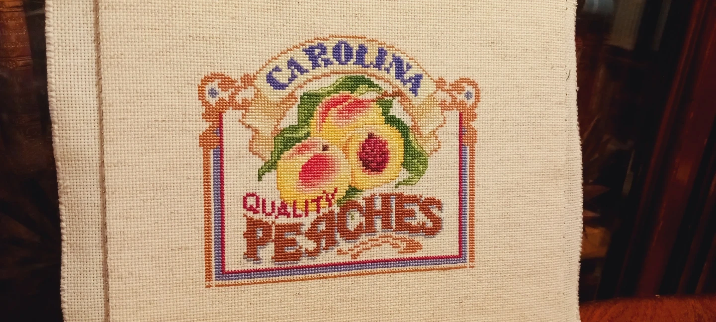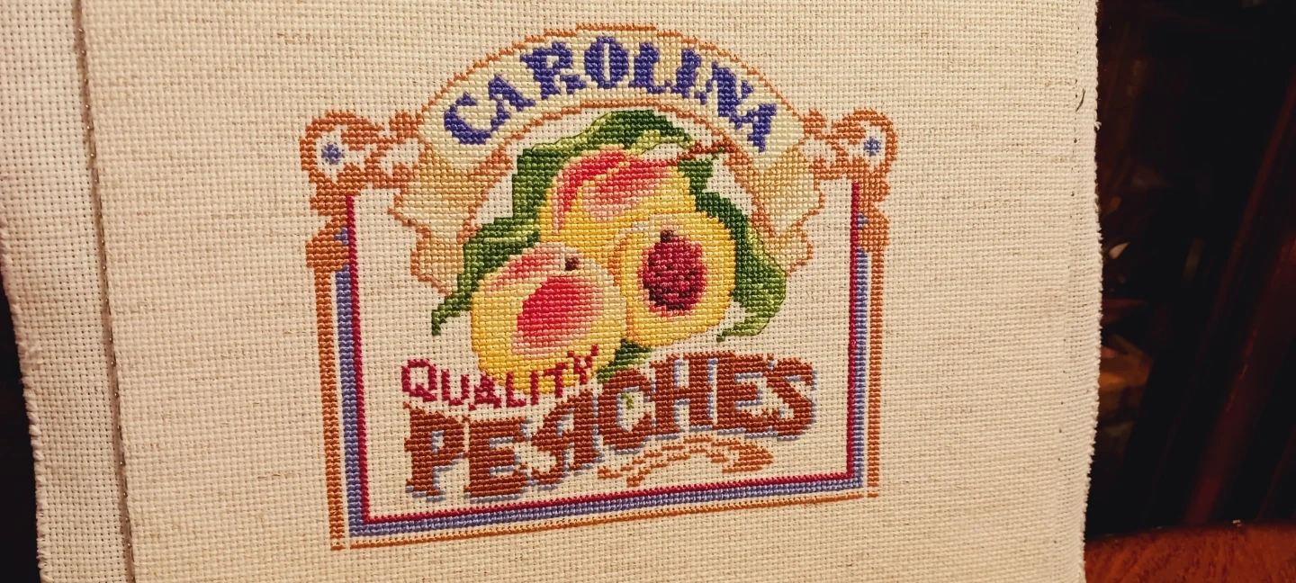 1000+Selling a beautiful needlepoint cross stitch artwork featuring Carolina Quality Peaches! The design is colorful and detailed, perfect for adding a touch of homemade charm to any space !! It is not framed, selling as is. 10"×10". Excellent condition. ALL MY PRICES ARE NEGOTIABLE !!