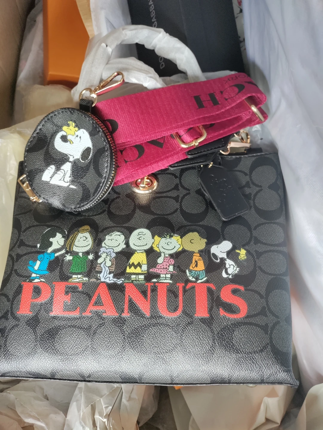 Selling a Coach Peanuts satchel! It features a fun Peanuts design with Snoopy and the gang. The bag comes with a matching Snoopy coin case and a detachable red strap. Perfect for any Peanuts fan!