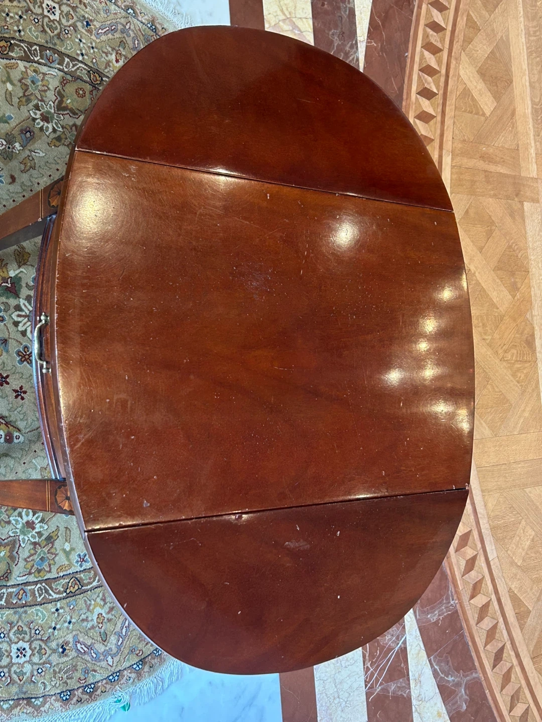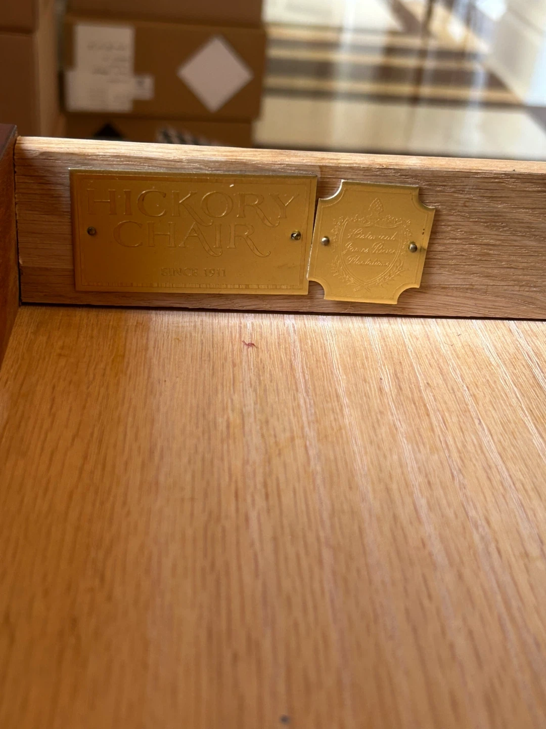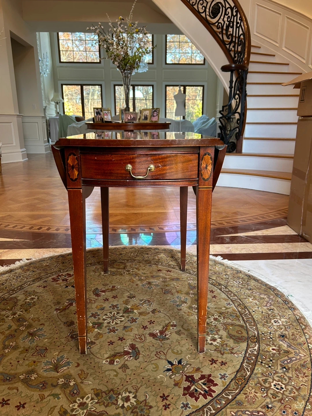Set of 2 Hickory Chair Mahogany End Tables. Both are drop leaf expandables, so the top can be expanded or left as is. The price is for both. Measurements are 28” deep, 28” tall, and when its closed, the top measures to 18”. When opened, top measures to 35”.