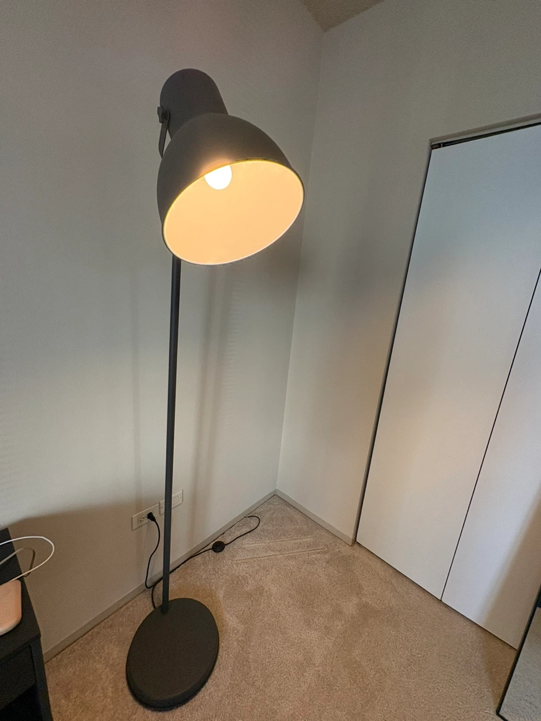 Selling a dark gray IKEA HEKTAR floor lamp. It's in great condition and ready to brighten up your space! This lamp provides a directed light that's great for reading or highlighting a specific area. It’s a stylish and functional addition to any room!