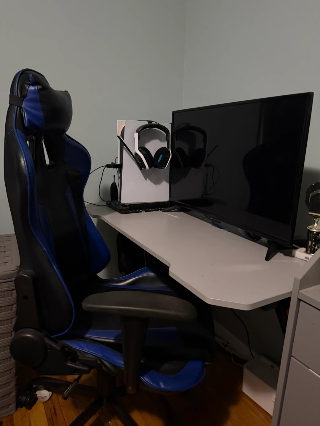 Selling a gray gaming desk & chair. It's sturdy and in good condition, perfect for setting up your gaming station or home office