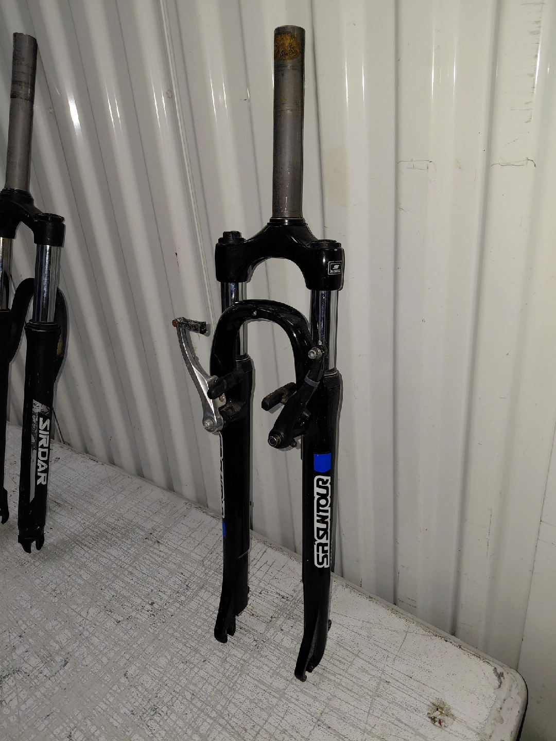 Selling two bicycle forks. One is a SR Suntour fork with a blue stripe and the other is a SIRDAR fork. Both are in used condition. Great for a bike project!