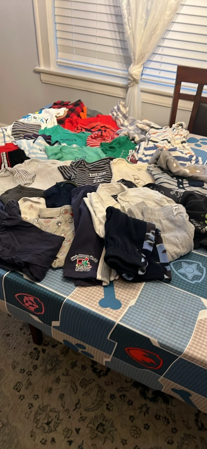 I have a big bundle of mixed baby clothes for sale! There are various sizes and styles, perfect for stocking up your little one's wardrobe Size 12 months -2t for boys