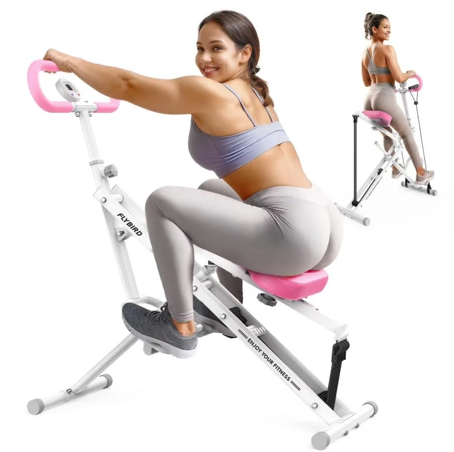 The Flybird squat machine is a compact, foldable home fitness machine that combines squat and rowing motions to provide a full-body workout. It is designed to support proper squat form to reduce strain on joints and includes resistance bands to customize workout intensity. The machine is suitable for beginners, the elderly, and individuals with physical limitations due to its stable design and ability to support up to 330 lbs.