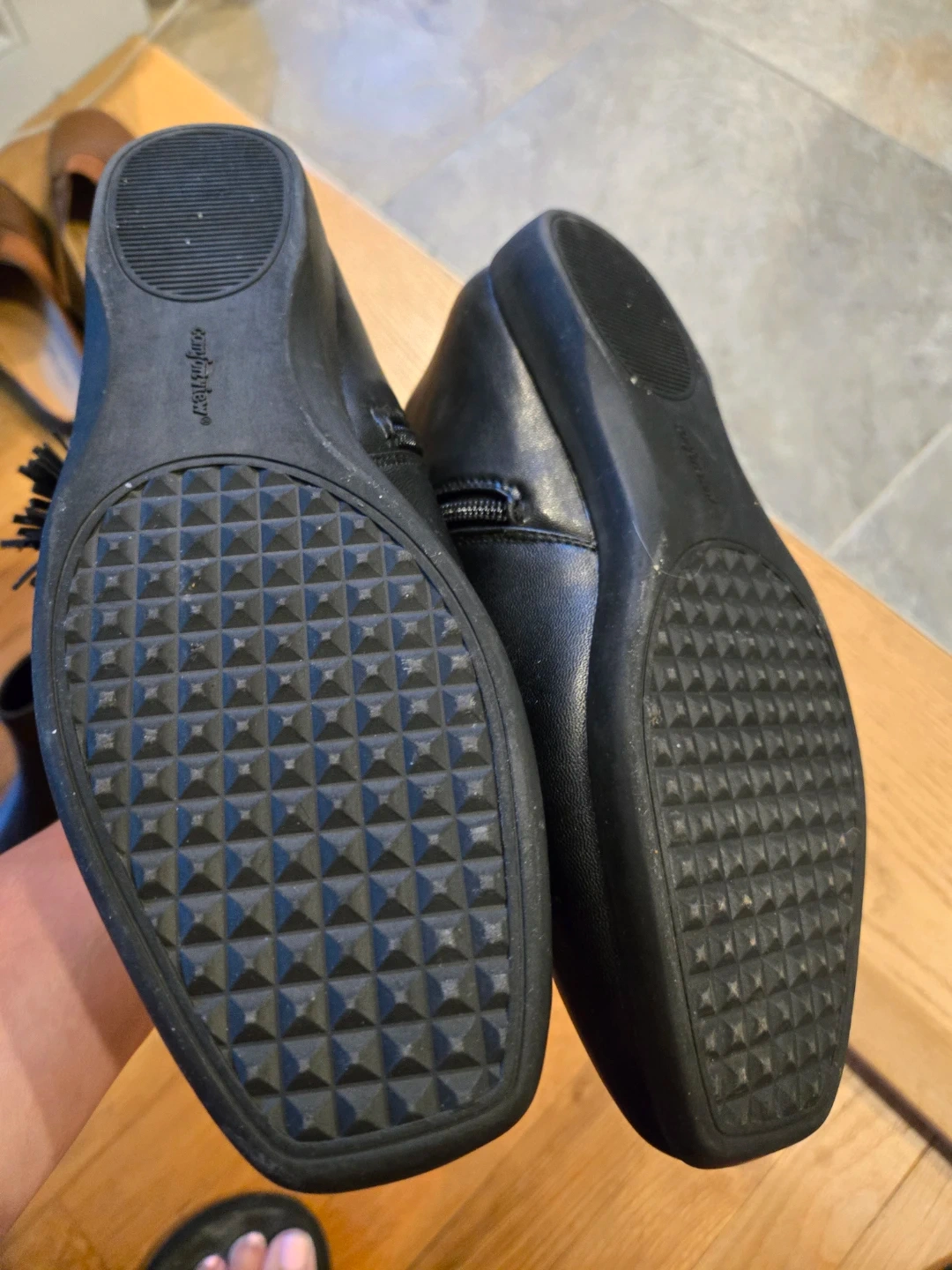 Womens Comfortview Booties, size 8 1/2m. Black and brown, zipper side and fring accent