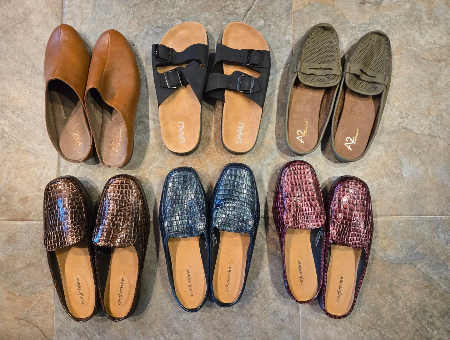 Selling a variety of mules from A2 by Aerosoles and Comfortview! They're in good condition and ready for a new home. Check out the photos to see the different styles and colors available