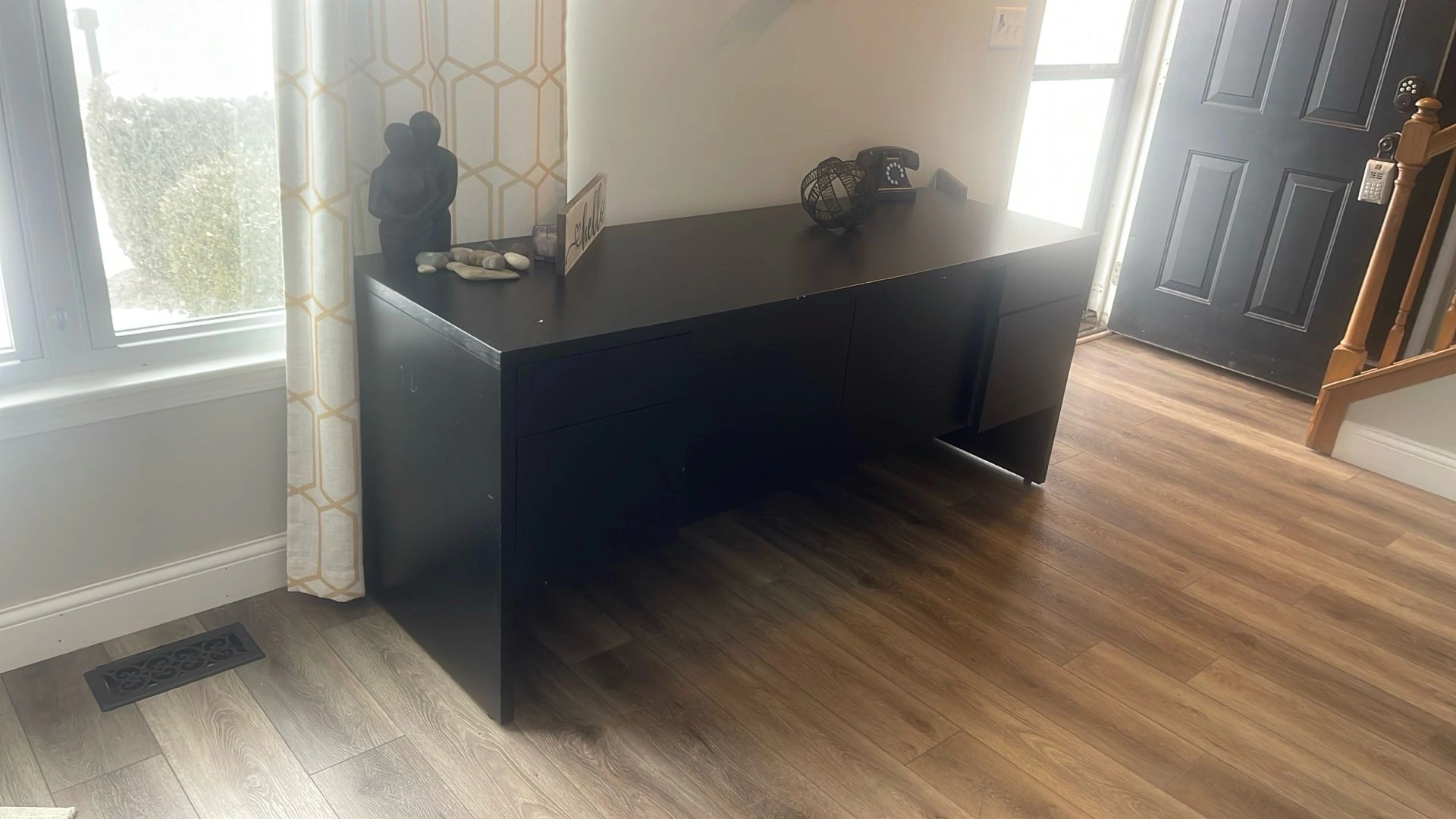 0Heavy, high-quality solid wood executive desk. Thick, sturdy construction — this is a premium piece built to last, not MDF. Extremely stable with a clean, modern design. Perfect for a home office, study, or professional workspace. Features: • Heavy, solid build • Thick, durable desktop • Deep storage drawers on both sides • Sleek, modern profile • Ideal for home offices or professional workspaces Condition: Used but well maintained. Minor wear only. Price: $500 Pick-up only in Monee, IL