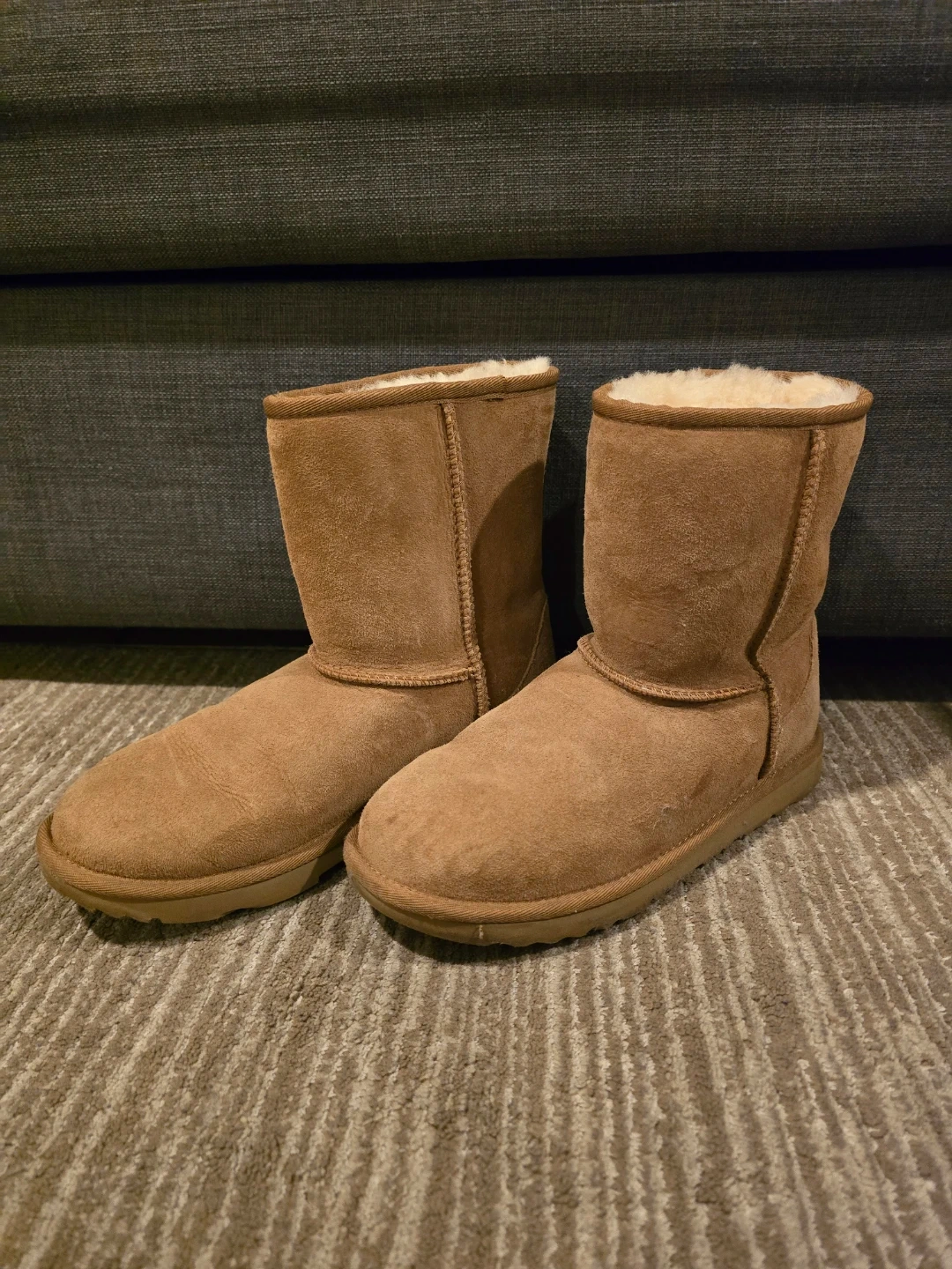 Selling a pair of UGG Classic Short boots in a size 6. They're in good condition and ready for a new home! These cozy boots are perfect for keeping your feet warm and comfortable