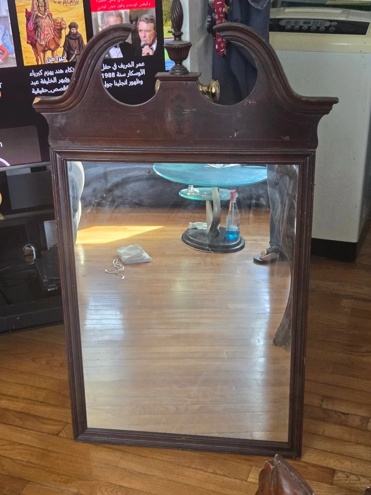 10Here's a framed wooden mirror! It is in good condition and would look great in any room of the house