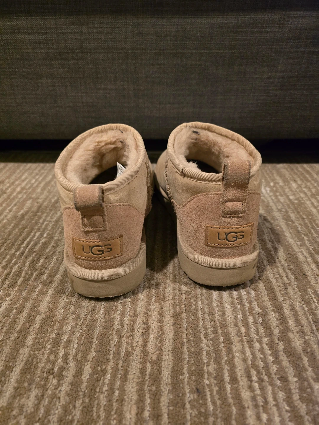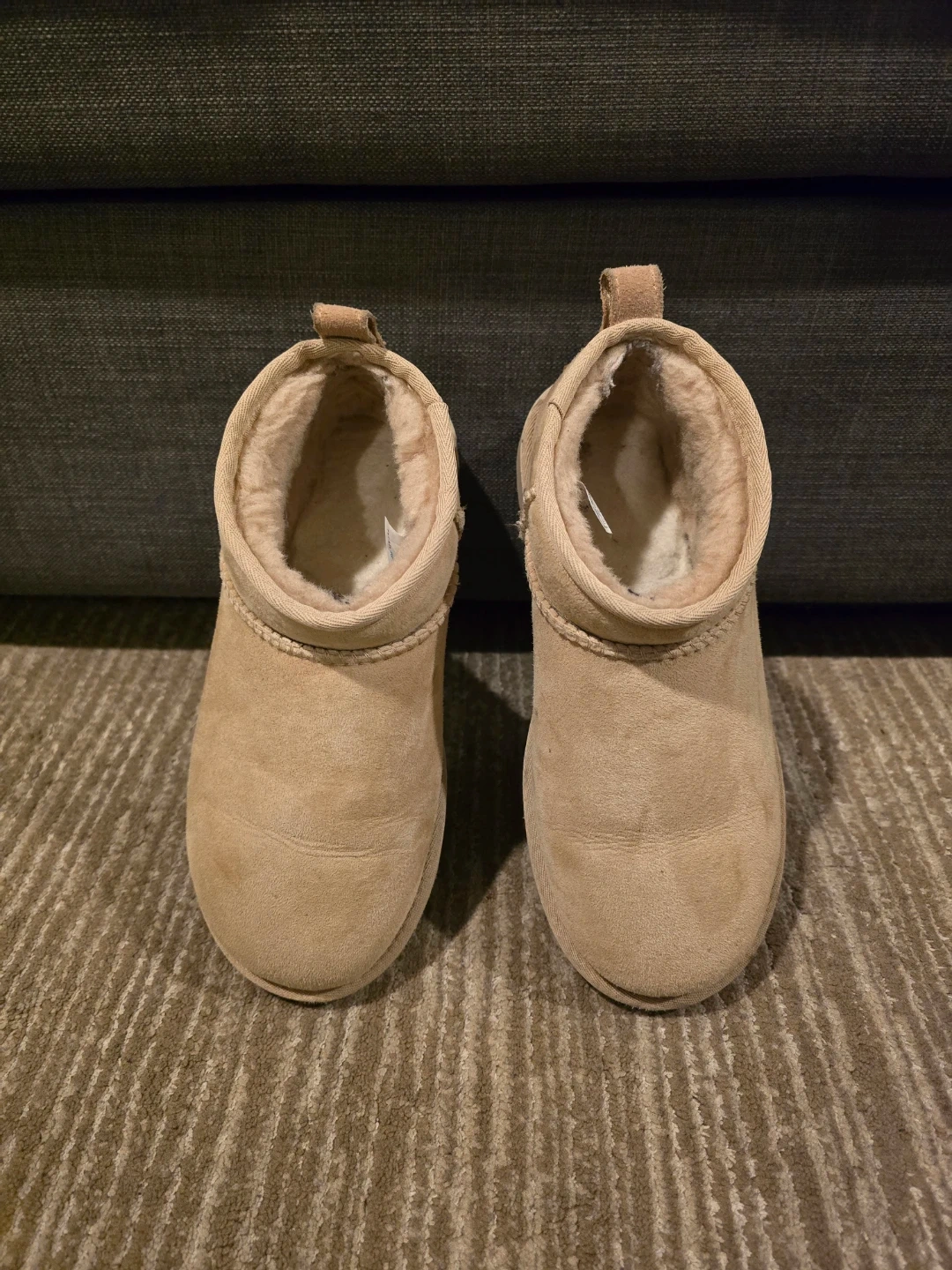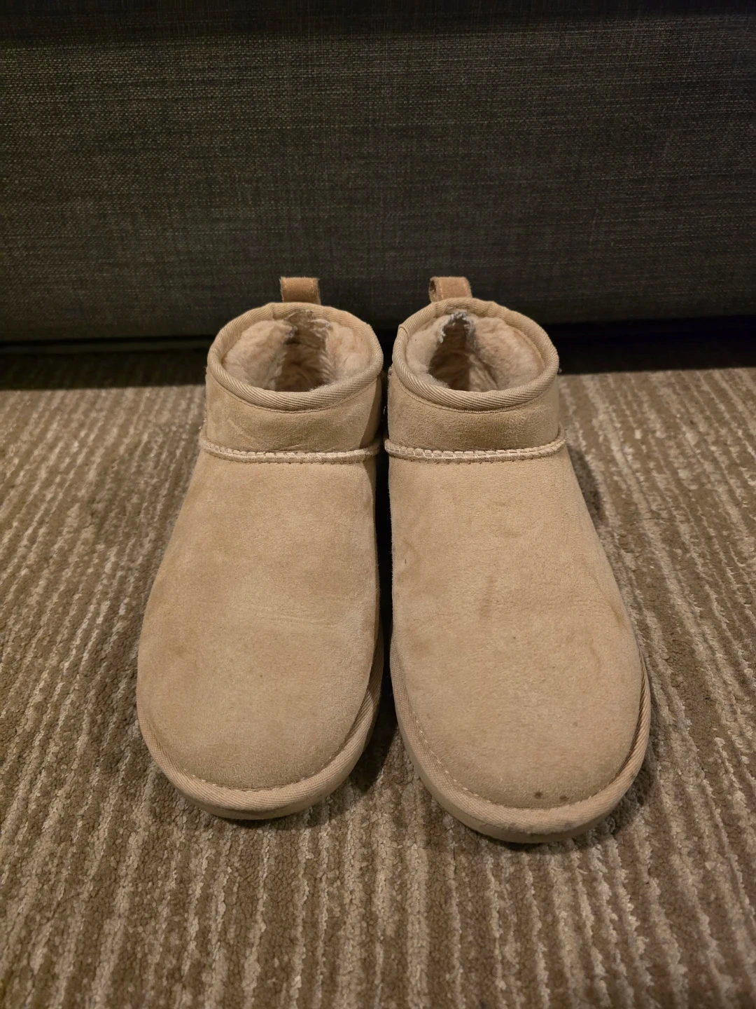 Selling a pair of UGG Classic Ultra Mini boots Driftwood color in a women's size 6. These are a beige color and in good condition. They're super comfortable and perfect for everyday wear!