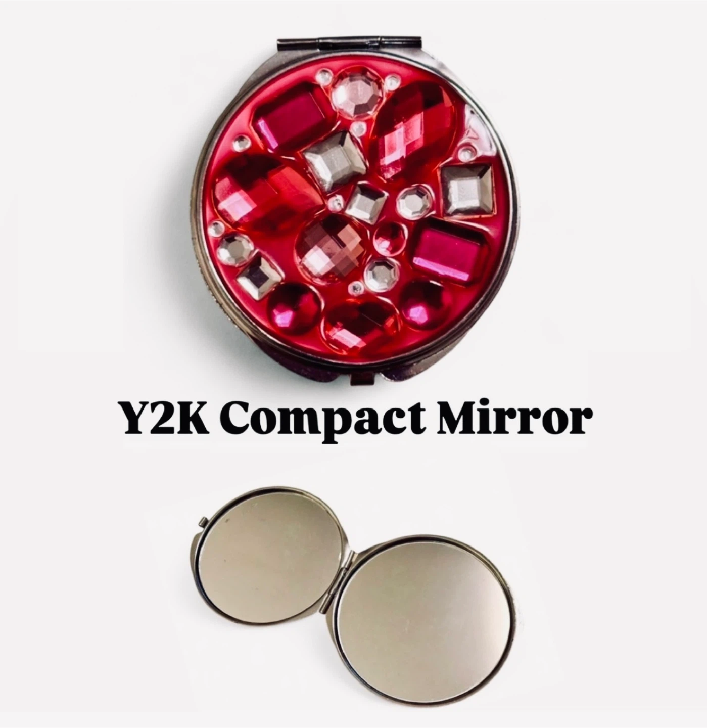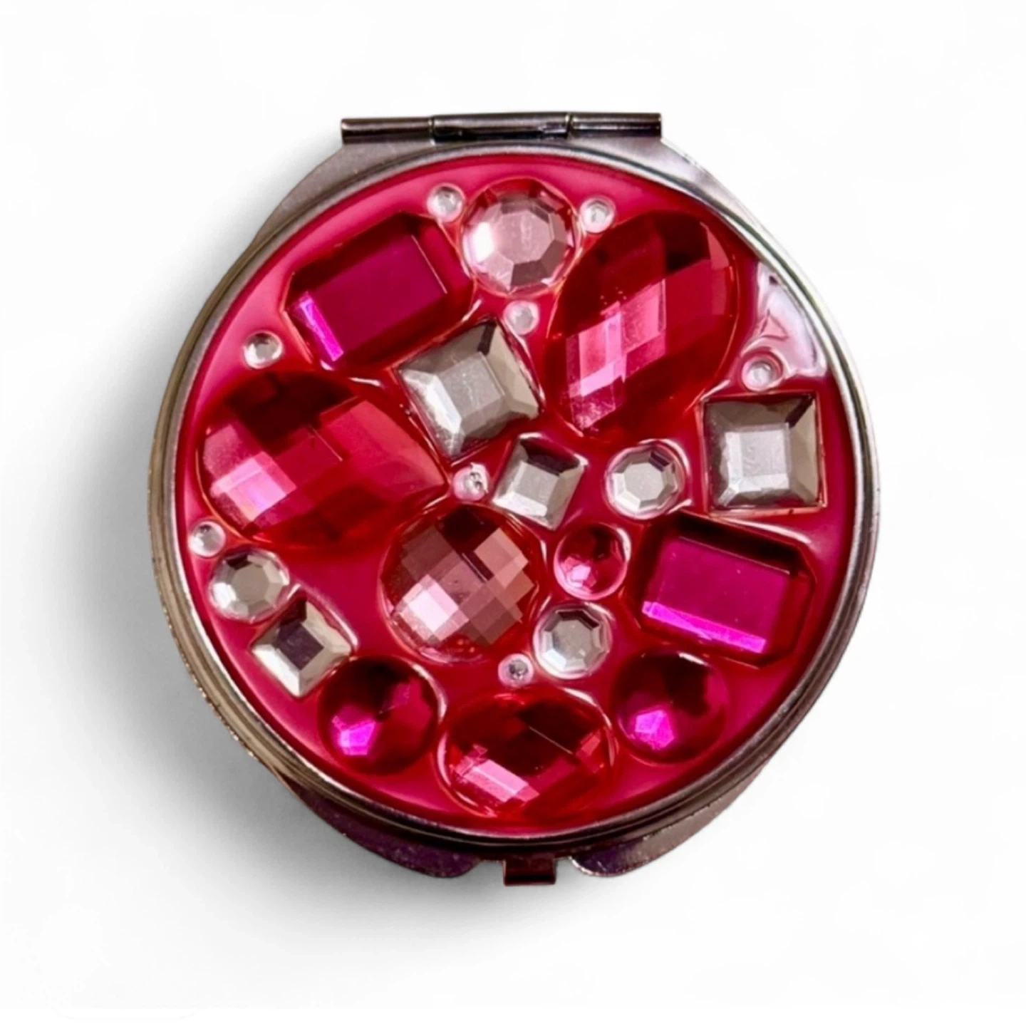 Y2K Vintage Pink Jewel Covered Compact Travel Mirror