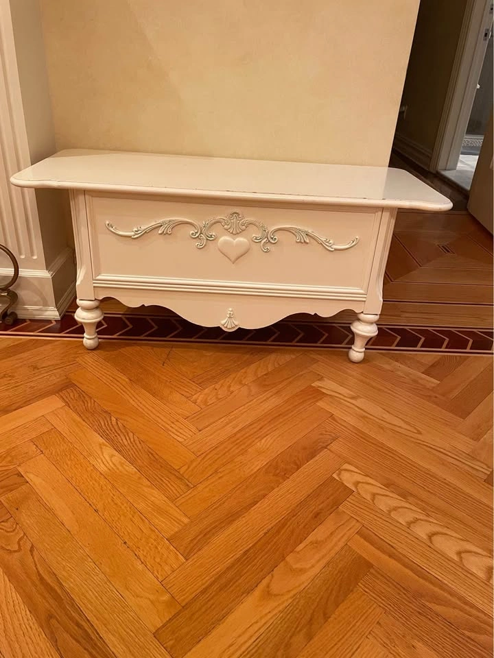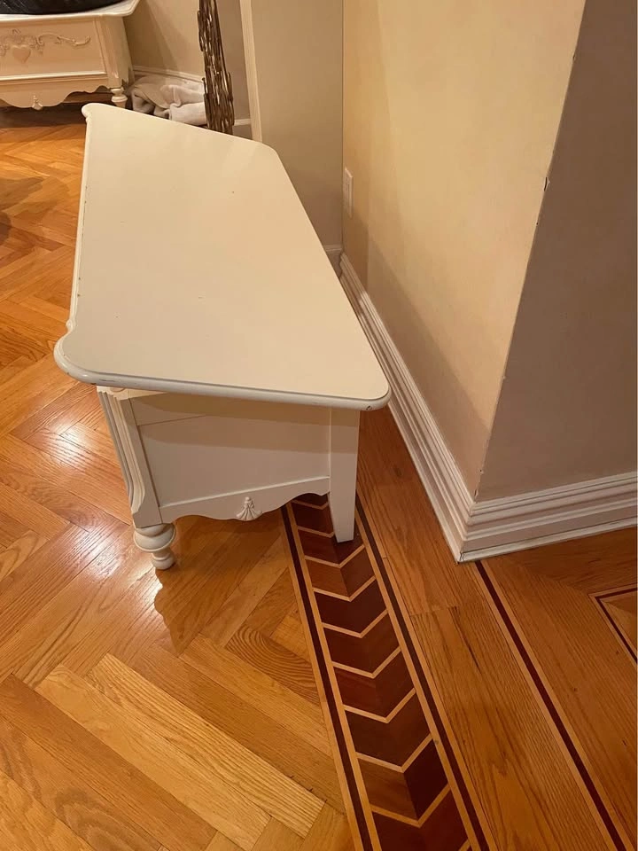 60Good quality wood bench, 2 pcs available $75 each 42”L 18”W 19”H, off white color