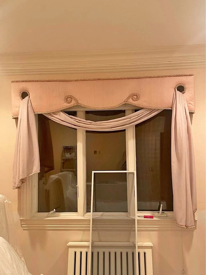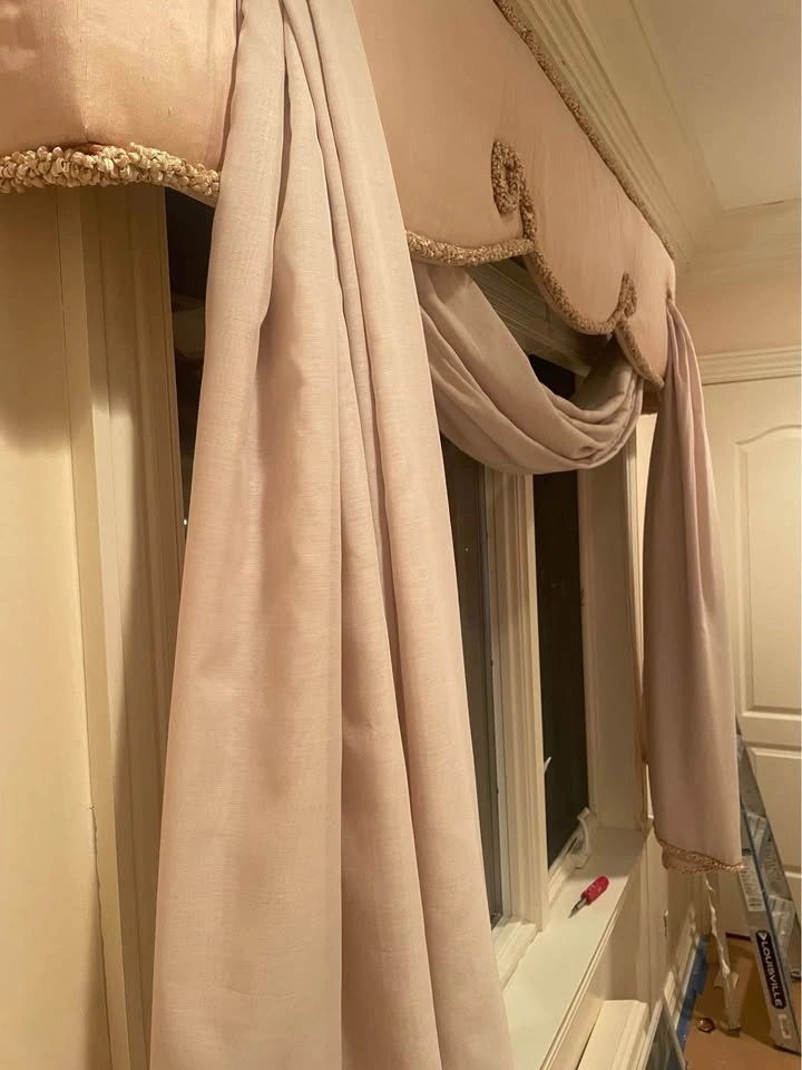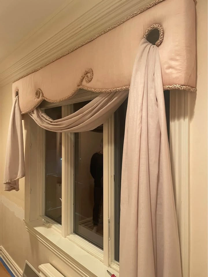 60Beautiful window treatments, ready to install, 82”L 17” H 5”W, fabric on wood frame it’s in good condition, very cute for little girls room or older, super easy to hang over windows, originally cost $2000, just renovating now, smoke and pet free environment ,pick up Brooklyn 11223.