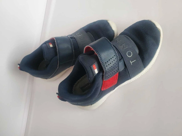 15Get your little one stepping out in style with these gently used Tommy Hilfiger shoes! These shoes are a size 2, featuring a convenient Velcro strap and sporty design that’s both stylish and practical. There are some signs of wear, but they're still ready for many more adventures. * Brand: Tommy Hilfiger * Size: 2 (Toddler) * Closure: Velcro Strap * Colour: Navy Blue and Red Size: Size 6 Kids Clothes For Sale By: Owner