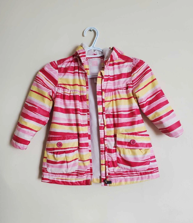 15This vibrant waterproof Tag jacket, in a size 3, is the perfect splash of colour for your little one's wardrobe, ready to brighten up any day, rain or shine! While it has been previously loved, it remains in excellent condition, all set for new adventures. Here are some more details about this eye-catching jacket: * Brand: Tag * Size: 3 * Colour: Multicoloured striped * Features: Hooded If you're seeing this ad, the jacket is still waiting to be whisked away to its new home!