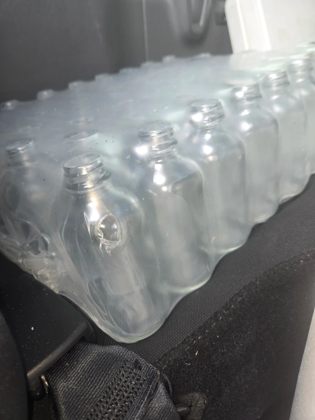 I have some empty glass bottles with black caps available. They're perfect for various uses and are in great condition. If you need some bottles, these could be just what you're looking for!. 4oz & 16oz clear & amber 72 in a case