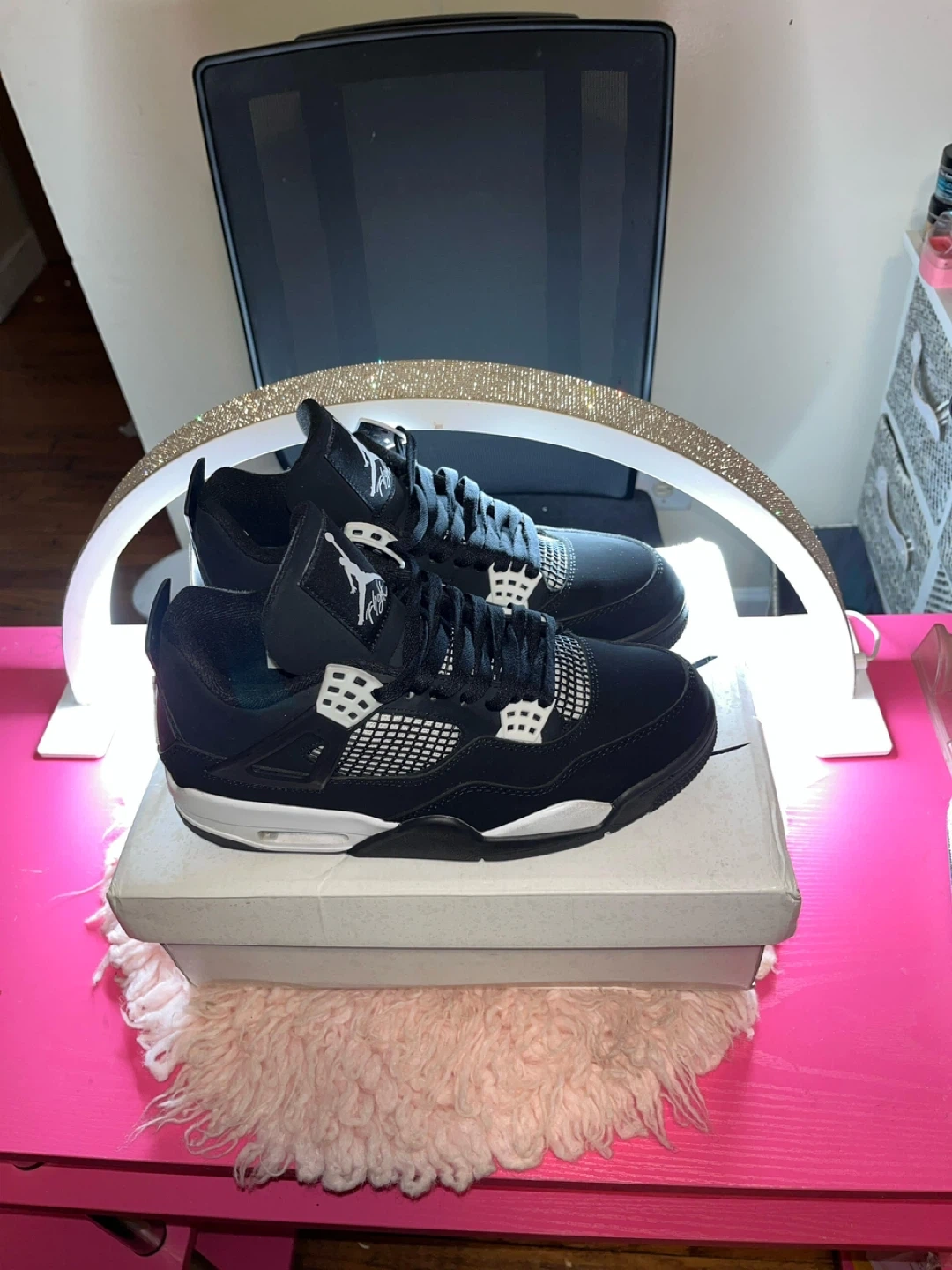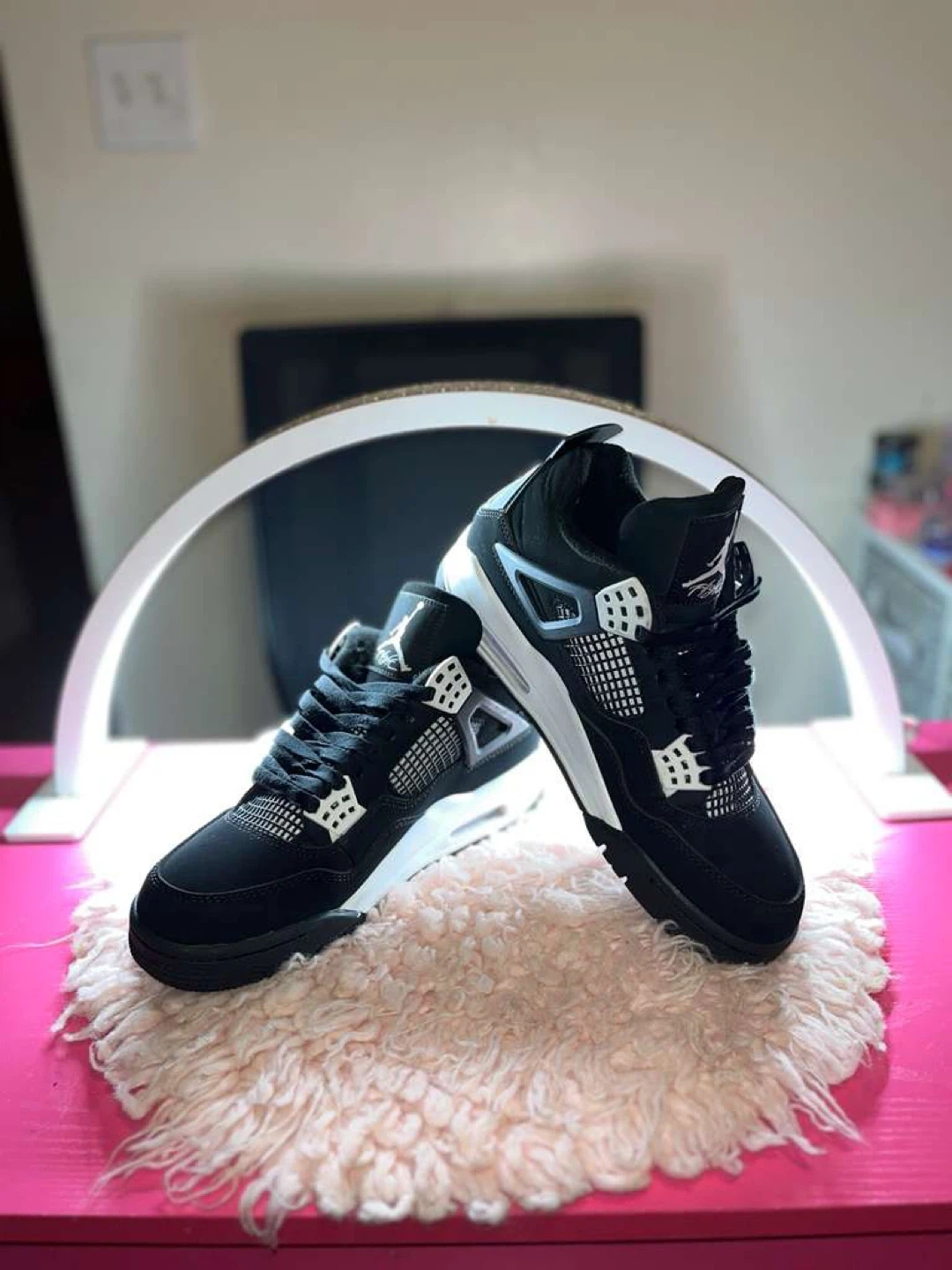 Used Jordan 4 Panda sneakers in good condition with box. The logo is slightly faded. Size 8.5. -Zapatillas Jordan 4 Panda usadas en buen estado, con caja. El logo está ligeramente descolorido. Talla 8.5.